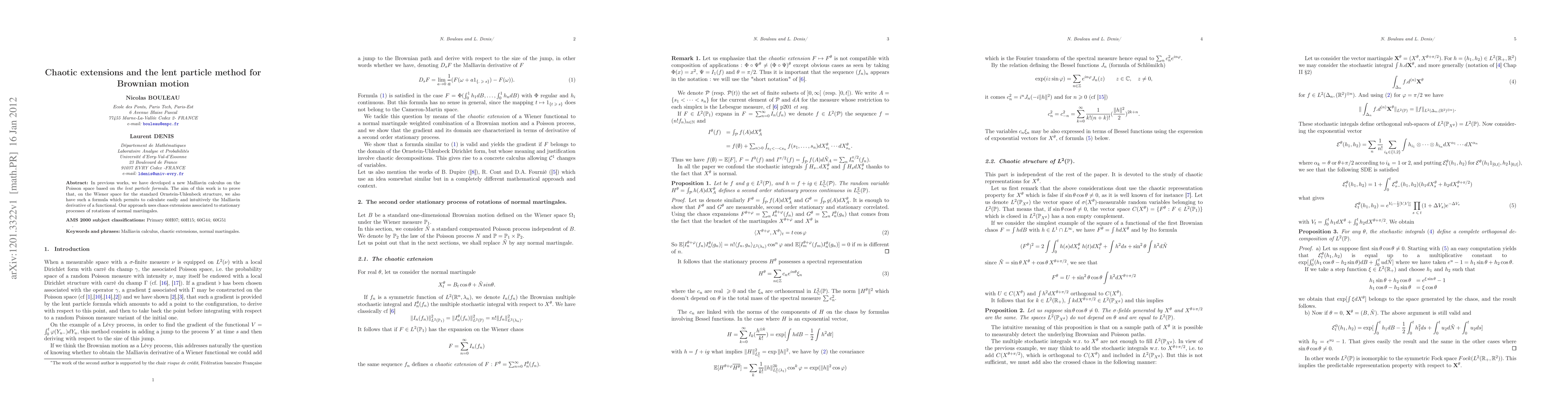 In previous works, we have developed a new Malliavin calculus on the Poisson space based on the lent particle formula. The aim of this work is to prove that, on the Wiener space for the standard Ornstein-Uhlenbeck structure, we also have such a formula which permits to calculate easily and intuitively the Malliavin derivative of a functional. Our approach uses chaos extensions associated to stationary processes of rotations of normal martingales.
