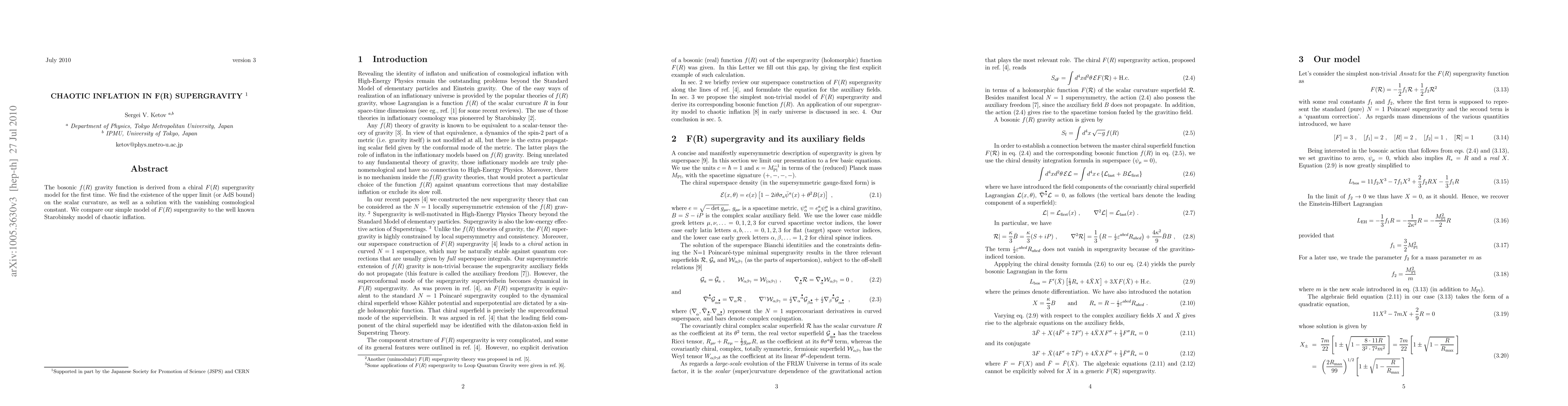 This paper derives the bosonic f(R) gravity function from a chiral F(R) supergravity model, establishing an upper limit on scalar curvature and a solution with a vanishing cosmological constant. The study compares this new model to the Starobinsky model of chaotic inflation.