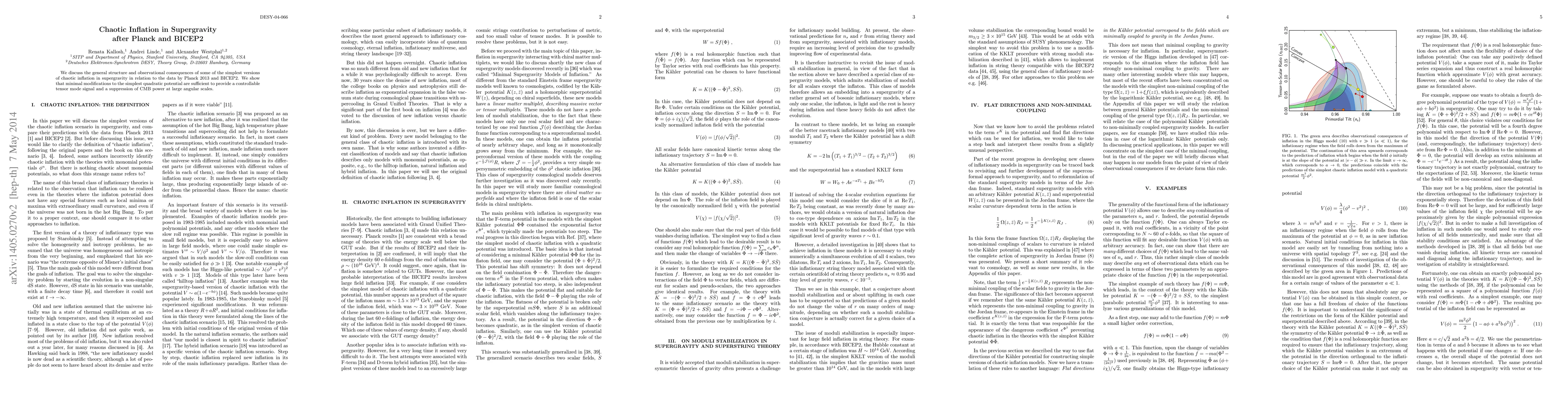 This paper examines the simplest versions of chaotic inflation within supergravity frameworks, demonstrating how minor adjustments to a quadratic potential can yield a manageable tensor mode signal and reduce CMB power at large angular scales, aligning with Planck 2013 and BICEP2 observations.
