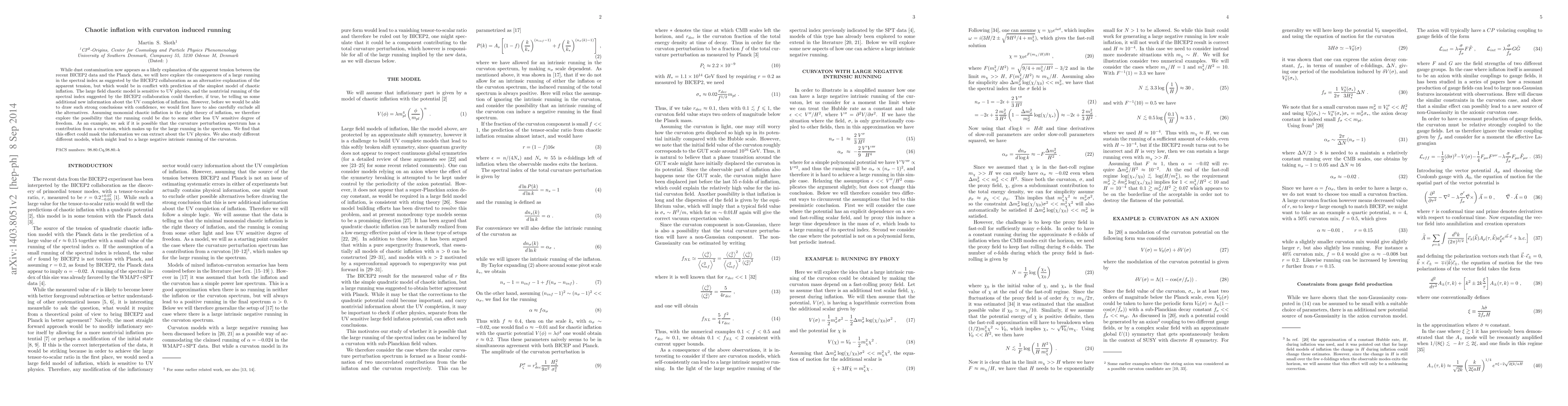 While dust contamination now appears as a likely explanation of the apparent tension between the recent BICEP2 data and the Planck data, we will here explore the consequences of a large running in the spectral index as suggested by the BICEP2 collaboration as an alternative explanation of the apparent tension, but which would be in conflict with prediction of the simplest model of chaotic inflation. The large field chaotic model is sensitive to UV physics, and the nontrivial running of the spectral index suggested by the BICEP2 collaboration could therefore, if true, be telling us some additional new information about the UV completion of inflation. However, before we would be able to draw such strong conclusions with confidence, we would first have to also carefully exclude all the alternatives. Assuming monomial chaotic inflation is the right theory of inflation, we therefore explore the possibility that the running could be due to some other less UV sensitive degree of freedom. As an example, we ask if it is possible that the curvature perturbation spectrum has a contribution from a curvaton, which makes up for the large running in the spectrum. We find that this effect could mask the information we can extract about the UV physics. We also study different different models, which might lead to a large negative intrinsic running of the curvaton.