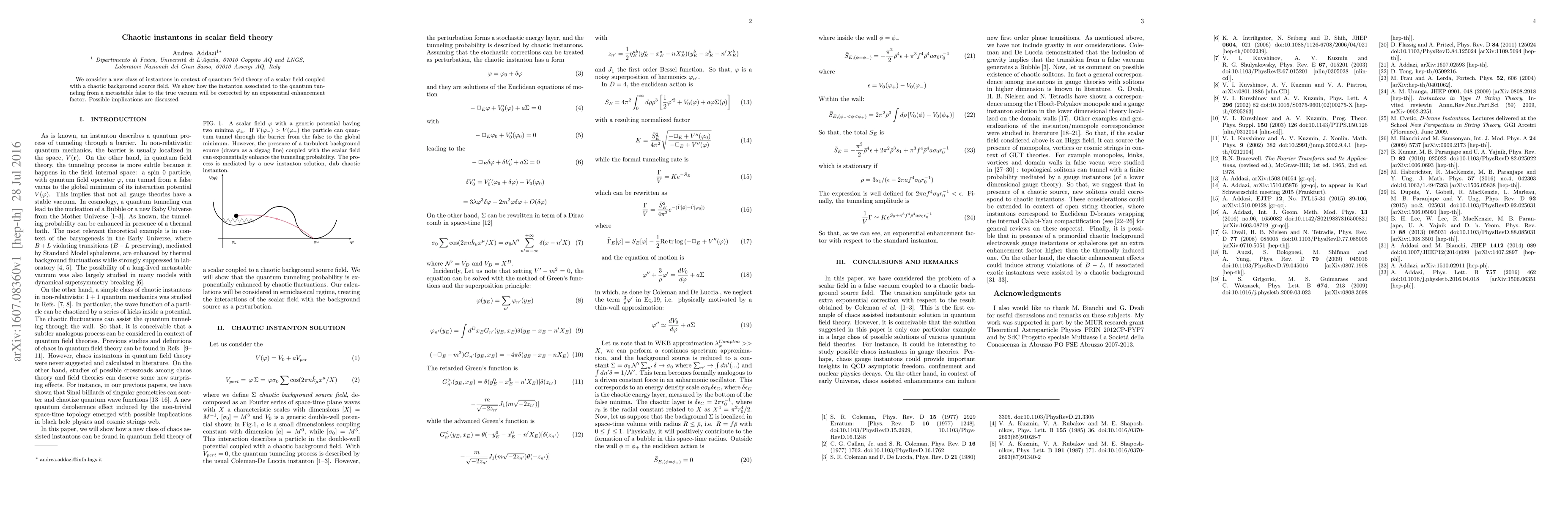 Summary: This paper explores a novel class of instantons in scalar field theory influenced by chaotic background fields, demonstrating an exponential enhancement factor in quantum tunneling from a metastable false vacuum to the true vacuum, with implications for understanding quantum field dynamics.