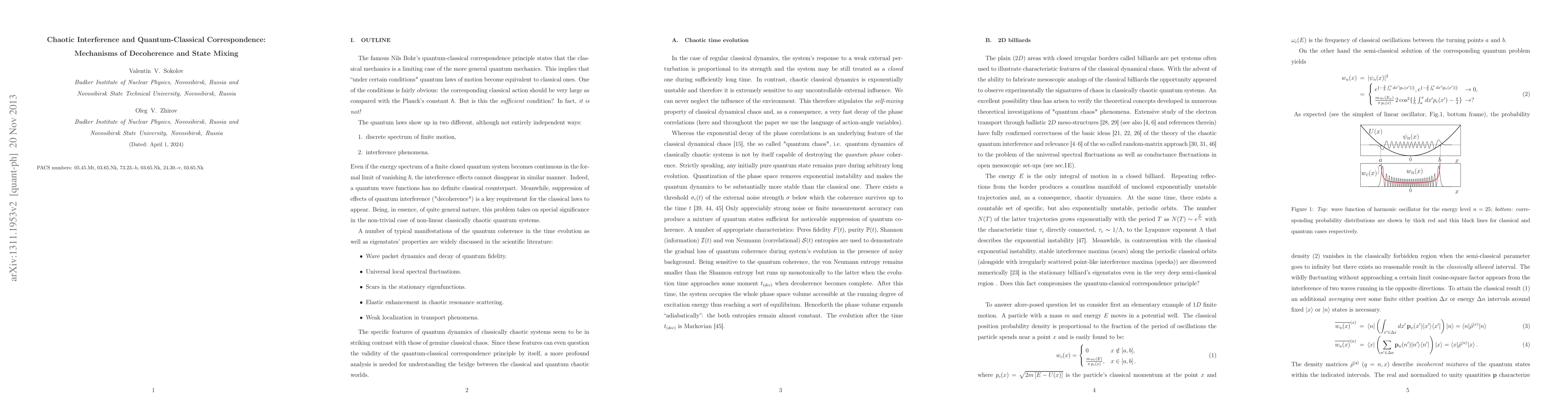 This paper explores the mechanisms of decoherence and state mixing in quantum-classical correspondence, emphasizing the role of chaotic interference in non-linear quantum systems. It analyzes the time behavior of various quantum metrics to demonstrate how decoherence bridges quantum and classical realms, particularly in driven systems and ballistic electron transport.