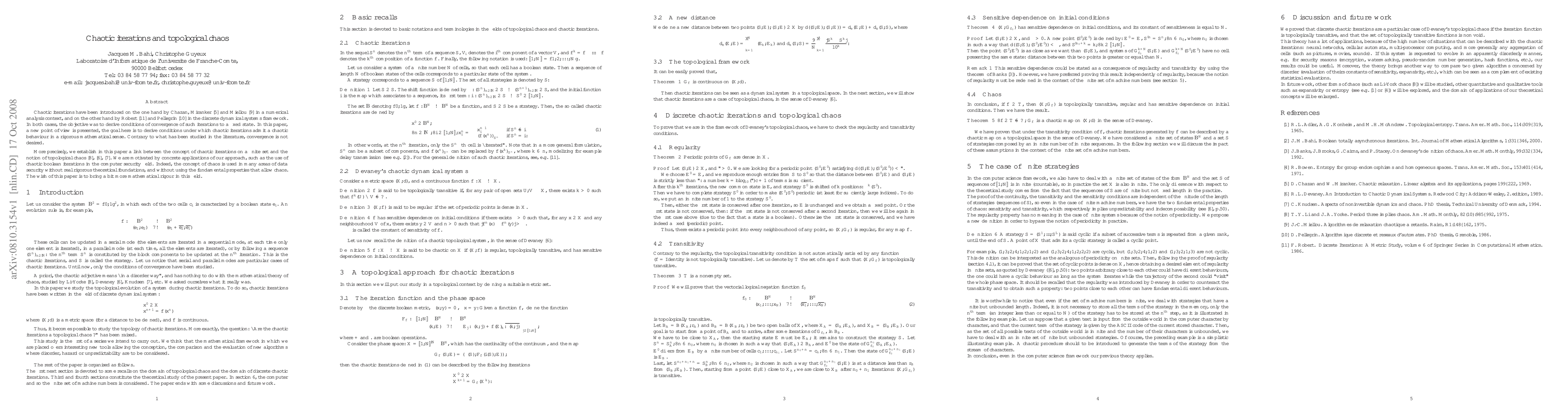 This paper explores chaotic iterations in the context of discrete dynamical systems, aiming to establish conditions for chaotic behavior rather than convergence. It links chaotic iterations to topological chaos, with a focus on enhancing mathematical rigor in applications like computer security.
