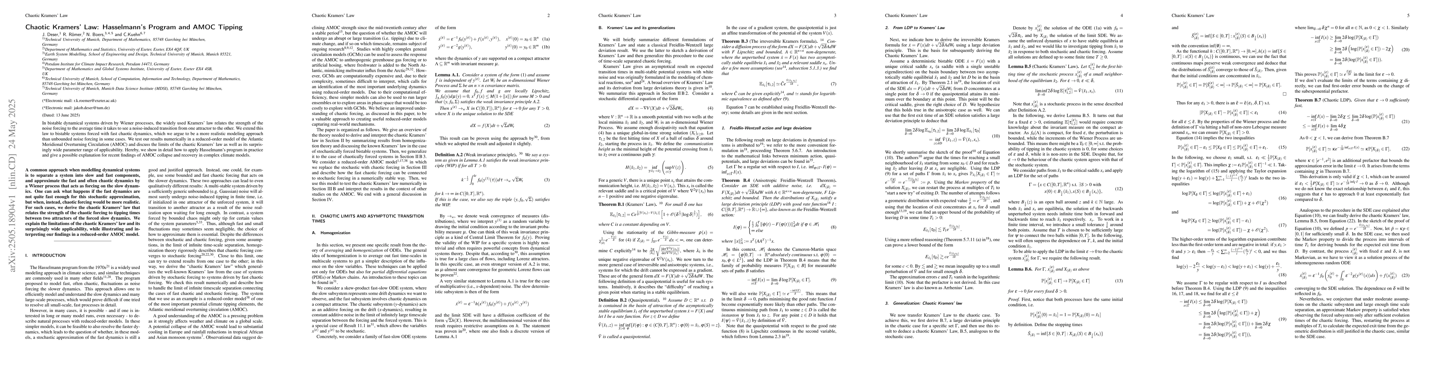 The research extends Kramers' law to bistable systems forced with fast chaotic dynamics, applying it to a reduced-order model of the Atlantic Meridional Overturning Circulation (AMOC).