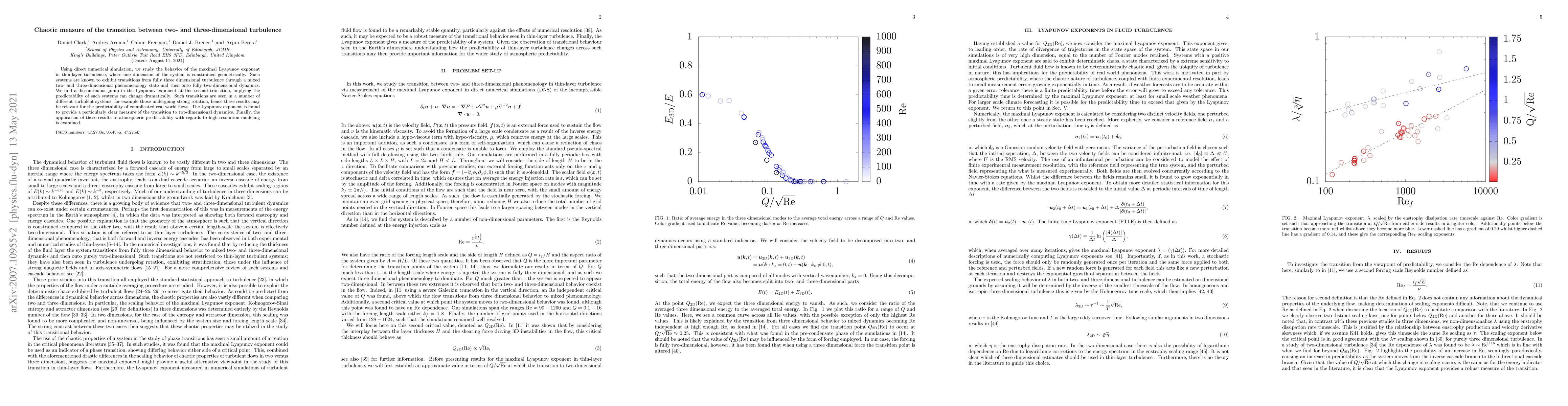 This study uses direct numerical simulations to investigate the maximal Lyapunov exponent in thin-layer turbulence, revealing a discontinuous jump at the transition from three-dimensional to two-dimensional dynamics. The findings suggest significant changes in predictability during these transitions, which are relevant for understanding turbulent systems like those influenced by strong rotation, and have implications for high-resolution atmospheric modeling.