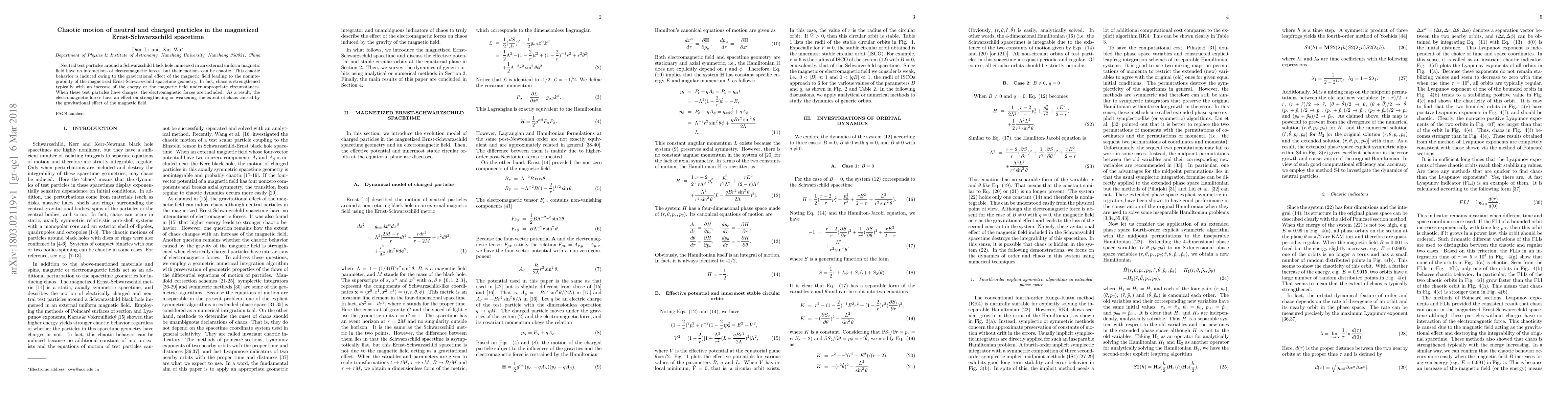 This paper explores the chaotic motion of both neutral and charged particles around a Schwarzschild black hole in a magnetized Ernst-Schwarzschild spacetime, revealing that gravitational effects from the magnetic field can induce chaos, while charged particles experience additional electromagnetic forces that modulate this chaos.