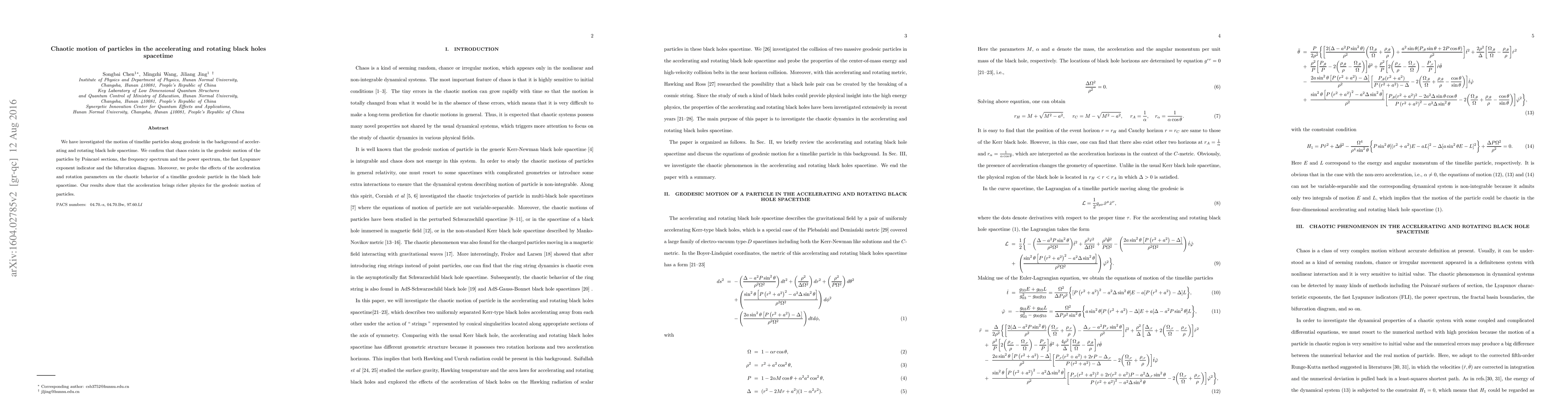 This paper investigates the chaotic motion of timelike particles in the spacetime around accelerating and rotating black holes, confirming chaos through Poincaré sections, power spectrum, fast Lyapunov exponent, and bifurcation diagrams. The study finds that acceleration enhances the chaotic behavior of particles in this complex spacetime.