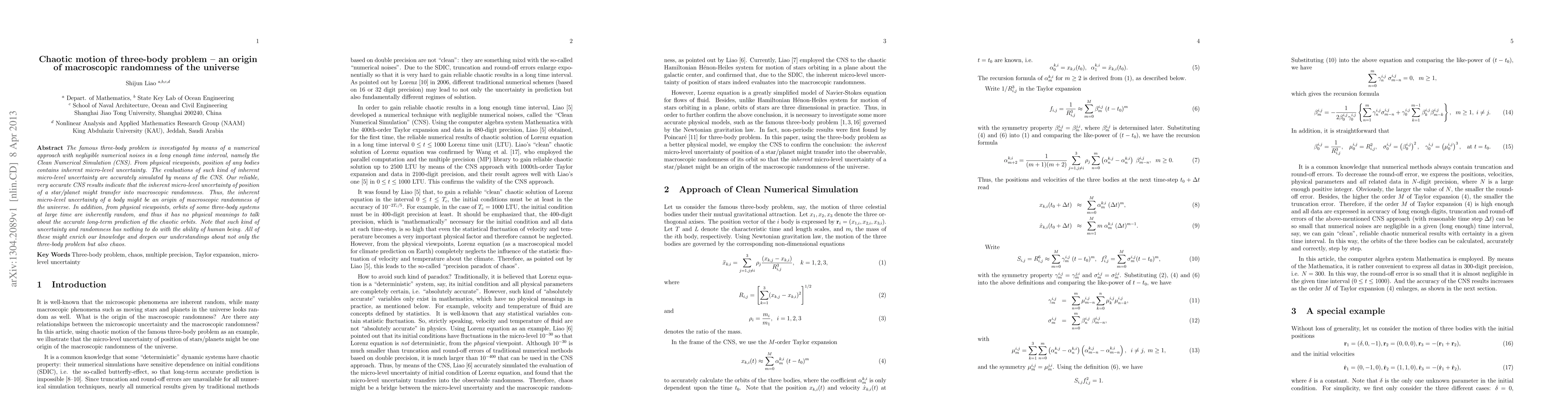 This paper uses a Clean Numerical Simulation (CNS) to investigate the chaotic three-body problem, revealing that inherent micro-level uncertainties in the positions of celestial bodies can lead to macroscopic randomness in the universe. The study concludes that long-term predictions of chaotic orbits are inherently random and not meaningful.
