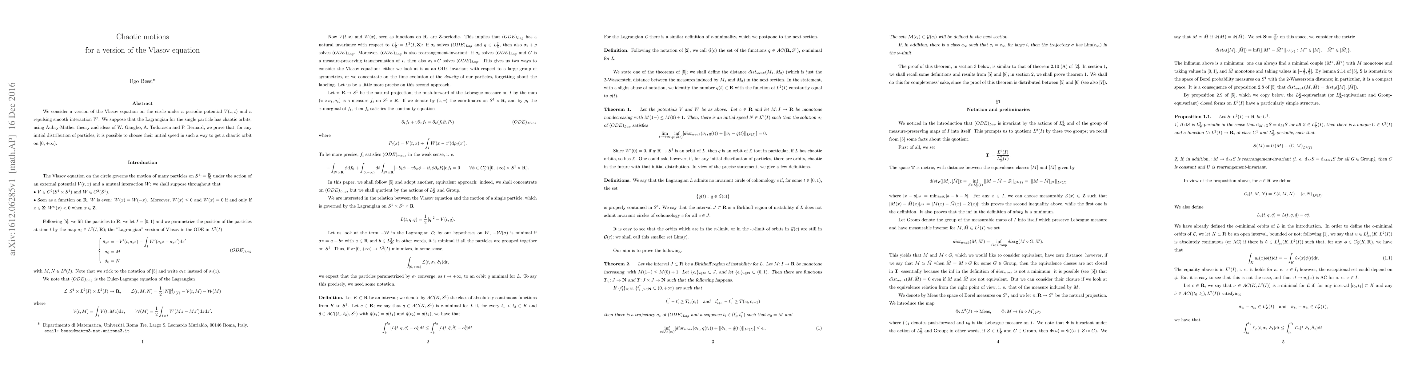 Researchers prove that for particles moving in a circle with chaotic orbits, it's possible to choose their initial speed to create a chaotic motion over time. This finding has implications for understanding complex particle behavior under certain conditions.
