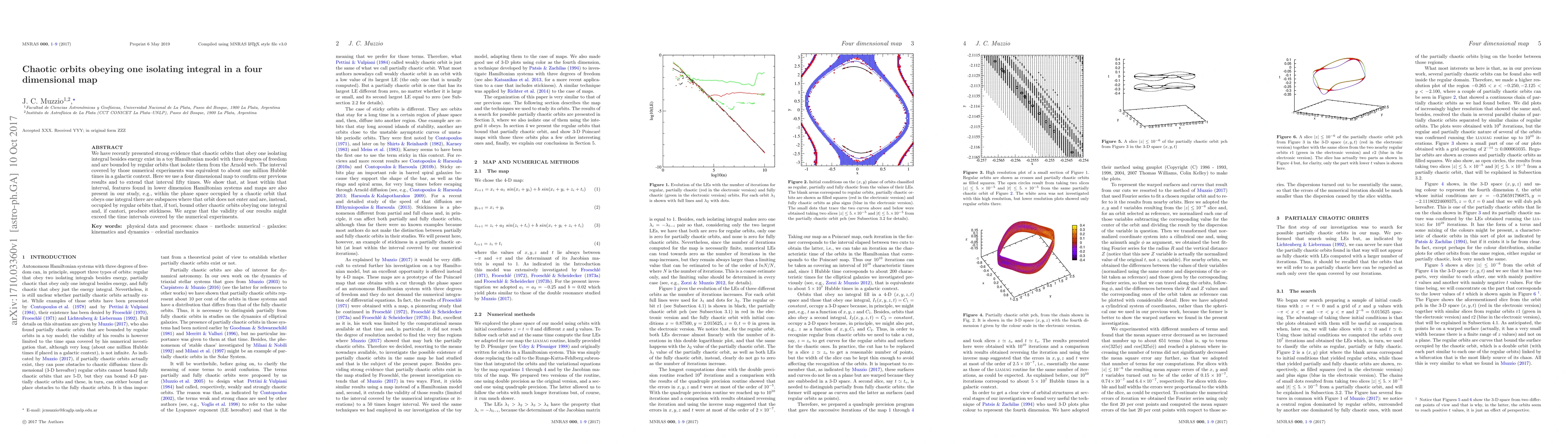 We have recently presented strong evidence that chaotic orbits that obey one isolating integral besides energy exist in a toy Hamiltonian model with three degrees of freedom and are bounded by regular orbits that isolate them from the Arnold web. The interval covered by those numerical experiments was equivalent to about one million Hubble times in a galactic context. Here we use a four dimensional map to confirm our previous results and to extend that interval fifty times. We show that, at least within that interval, features found in lower dimension Hamiltonian systems and maps are also present in our study, e.g., within the phase space occupied by a chaotic orbit that obeys one integral there are subspaces where that orbit does not enter and are, instead, occupied by regular orbits that, if tori, bound other chaotic orbits obeying one integral and, if cantori, produce stickiness. We argue that the validity of our results might exceed the time intervals covered by the numerical experiments.