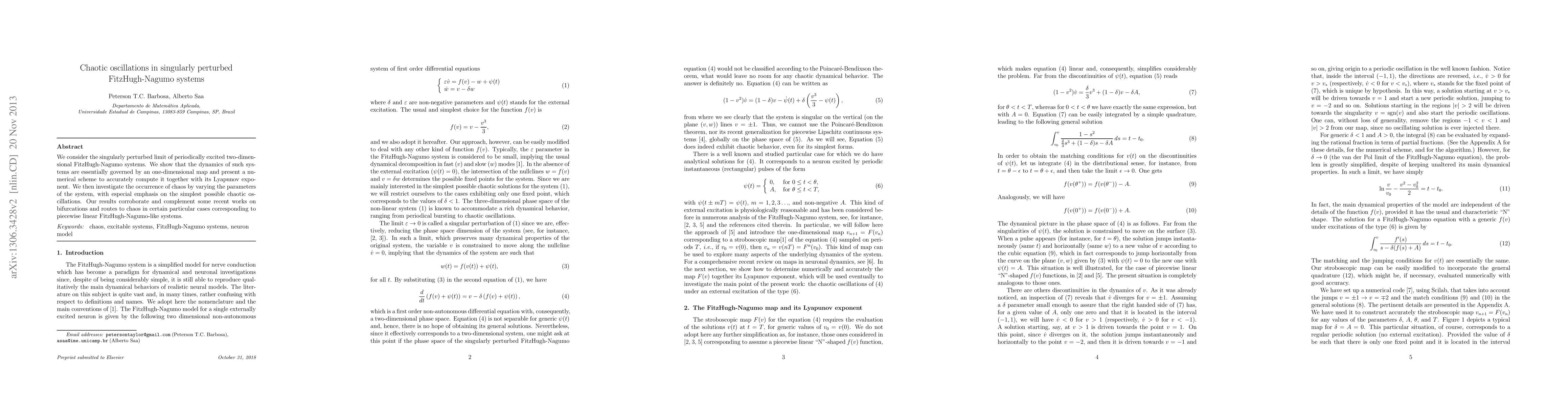 The paper introduces a novel method for analyzing chaotic oscillations in singularly perturbed FitzHugh-Nagumo systems by constructing and studying a one-dimensional stroboscopic map, providing a clear route to identifying chaotic behavior through Lyapunov exponents and unstable fixed points.