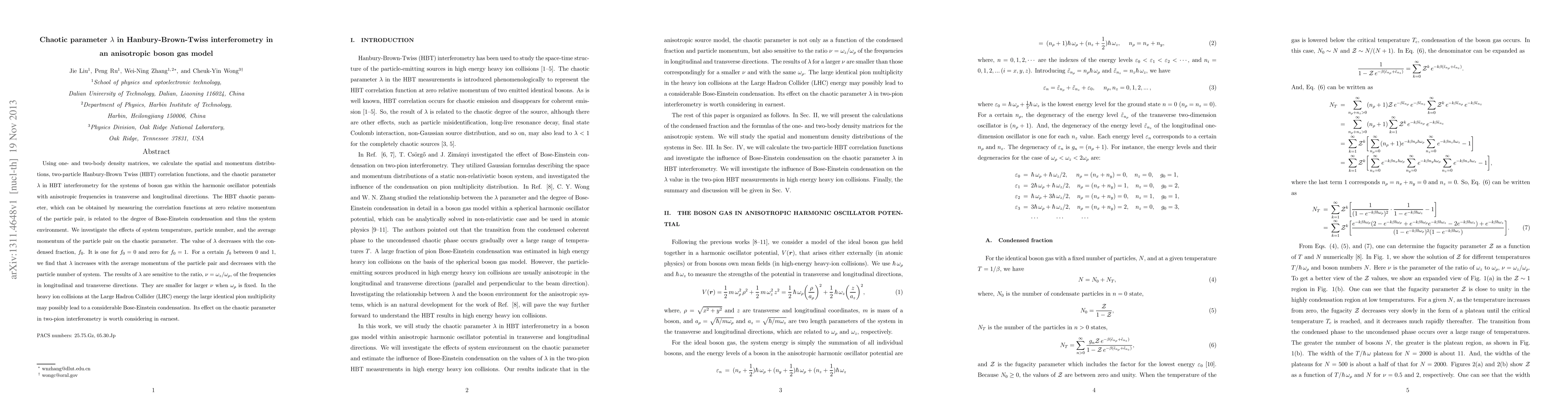 Researchers investigated the chaotic parameter in Hanbury-Brown-Twiss interferometry for boson gases with anisotropic frequencies, finding it decreases with Bose-Einstein condensation and increases with particle momentum.