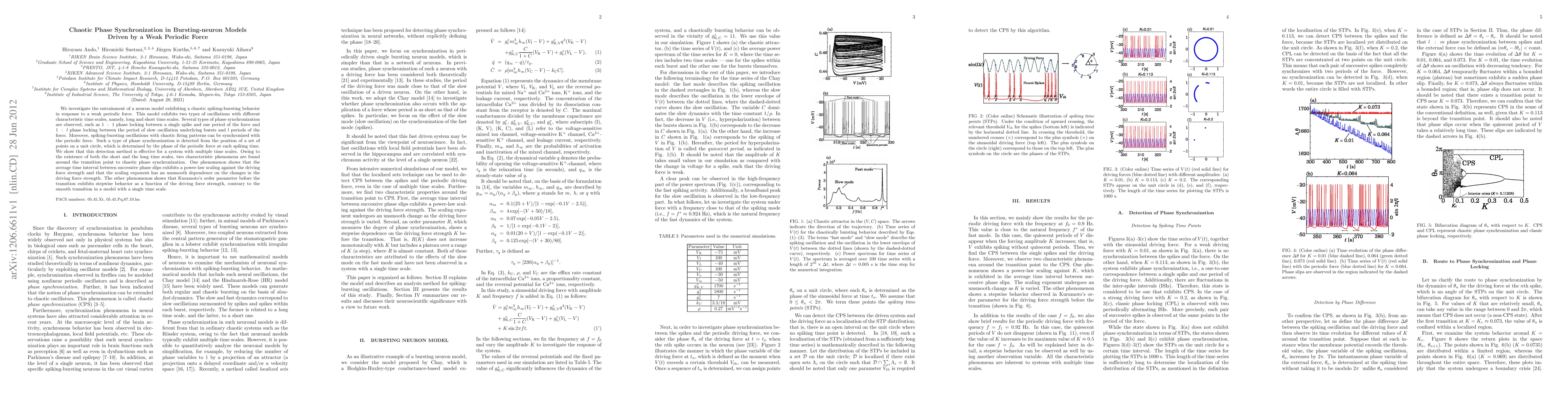 We investigate the entrainment of a neuron model exhibiting a chaotic spiking-bursting behavior in response to a weak periodic force. This model exhibits two types of oscillations with different characteristic time scales, namely, long and short time scales. Several types of phase synchronization are observed, such as 1 : 1 phase locking between a single spike and one period of the force and 1 : l phase locking between the period of slow oscillation underlying bursts and l periods of the force. Moreover, spiking-bursting oscillations with chaotic firing patterns can be synchronized with the periodic force. Such a type of phase synchronization is detected from the position of a set of points on a unit circle, which is determined by the phase of the periodic force at each spiking time. We show that this detection method is effective for a system with multiple time scales. Owing to the existence of both the short and the long time scales, two characteristic phenomena are found around the transition point to chaotic phase synchronization. One phenomenon shows that the average time interval between successive phase slips exhibits a power-law scaling against the driving force strength and that the scaling exponent has an unsmooth dependence on the changes in the driving force strength. The other phenomenon shows that Kuramoto's order parameter before the transition exhibits stepwise behavior as a function of the driving force strength, contrary to the smooth transition in a model with a single time scale.