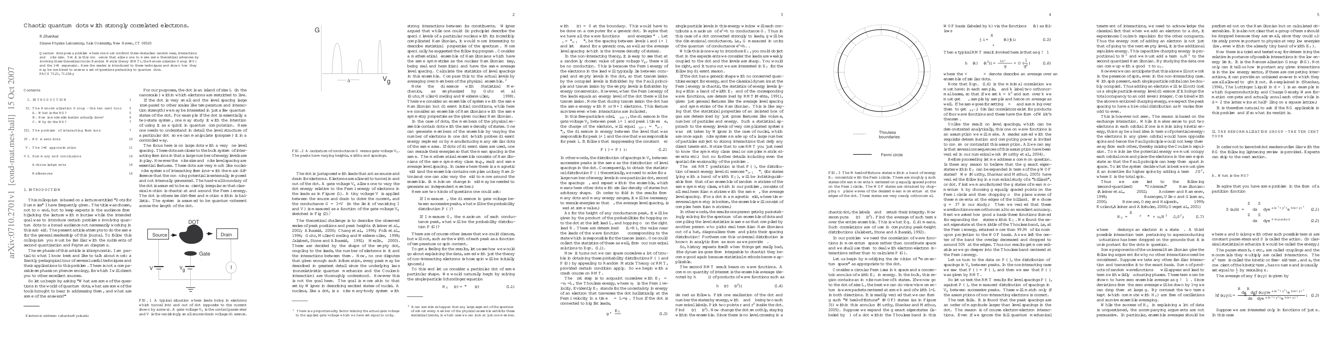 Quantum dots pose a problem where one must confront three obstacles: randomness, interactions and finite size. Yet it is this confluence that allows one to make some theoretical advances by invoking three theoretical tools: Random Matrix theory (RMT), the Renormalization Group (RG) and the 1/N expansion. Here the reader is introduced to these techniques and shown how they may be combined to answer a set of questions pertaining to quantum dots