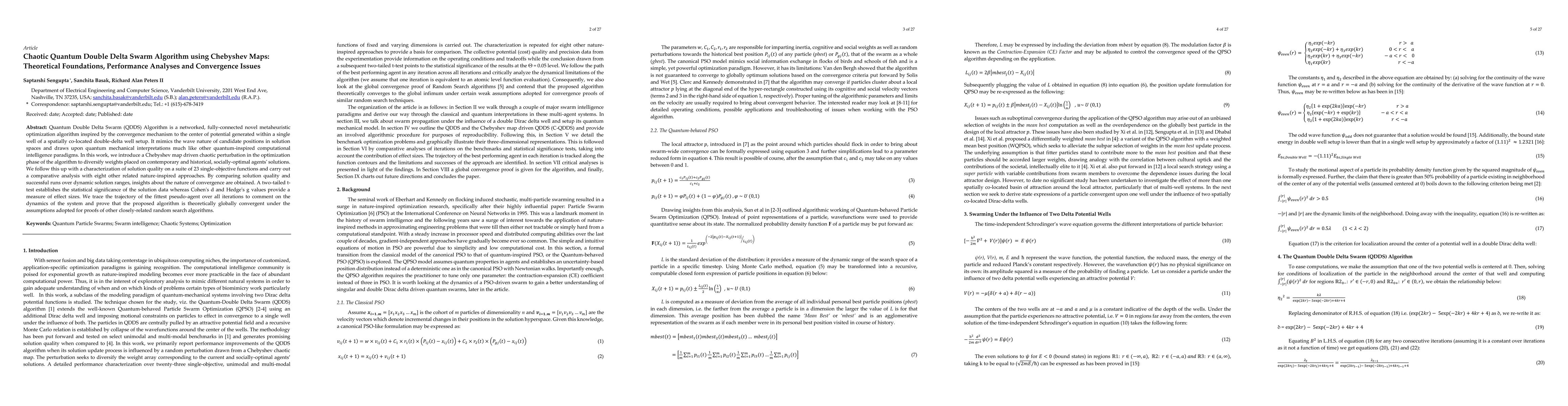 The Quantum Double Delta Swarm (QDDS) Algorithm, inspired by quantum mechanics, incorporates a chaotic perturbation via Chebyshev maps to enhance solution diversity. The algorithm's performance is analyzed through a comparative study on 23 functions, demonstrating statistically significant improvements over other nature-inspired methods.
