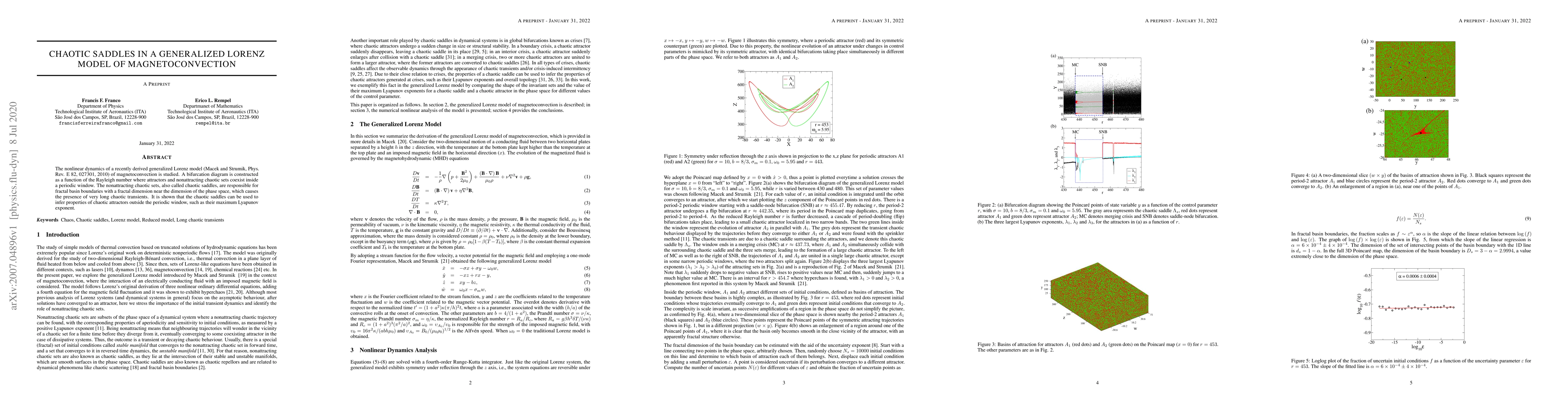 This paper investigates the chaotic dynamics in a generalized Lorenz model of magnetoconvection, revealing the coexistence of attractors and nonattracting chaotic sets, termed chaotic saddles. These saddles contribute to fractal basin boundaries, leading to long chaotic transients and allowing the inference of properties of chaotic attractors.