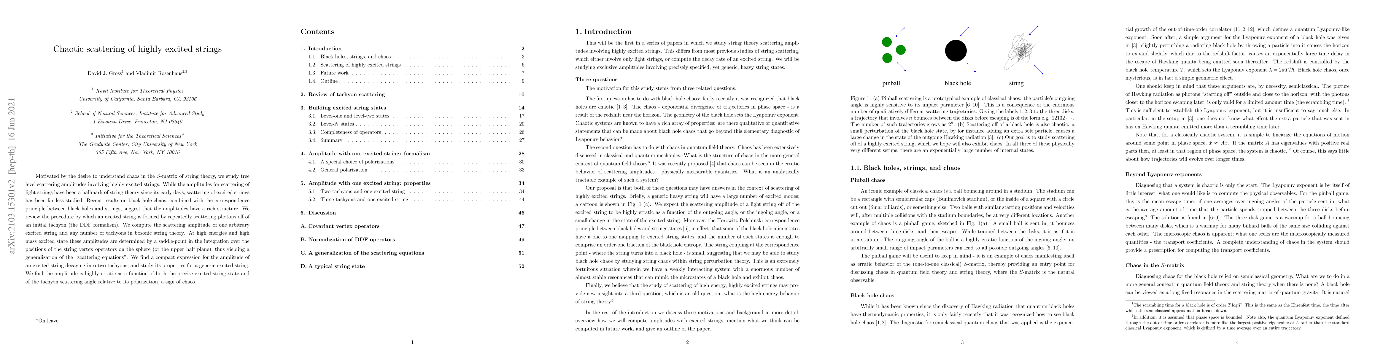 Motivated by the desire to understand chaos in the $S$-matrix of string theory, we study tree level scattering amplitudes involving highly excited strings. While the amplitudes for scattering of light strings have been a hallmark of string theory since its early days, scattering of excited strings has been far less studied. Recent results on black hole chaos, combined with the correspondence principle between black holes and strings, suggest that the amplitudes have a rich structure. We review the procedure by which an excited string is formed by repeatedly scattering photons off of an initial tachyon (the DDF formalism). We compute the scattering amplitude of one arbitrary excited string and any number of tachyons in bosonic string theory. At high energies and high mass excited state these amplitudes are determined by a saddle-point in the integration over the positions of the string vertex operators on the sphere (or the upper half plane), thus yielding a generalization of the "scattering equations". We find a compact expression for the amplitude of an excited string decaying into two tachyons, and study its properties for a generic excited string. We find the amplitude is highly erratic as a function of both the precise excited string state and of the tachyon scattering angle relative to its polarization, a sign of chaos.