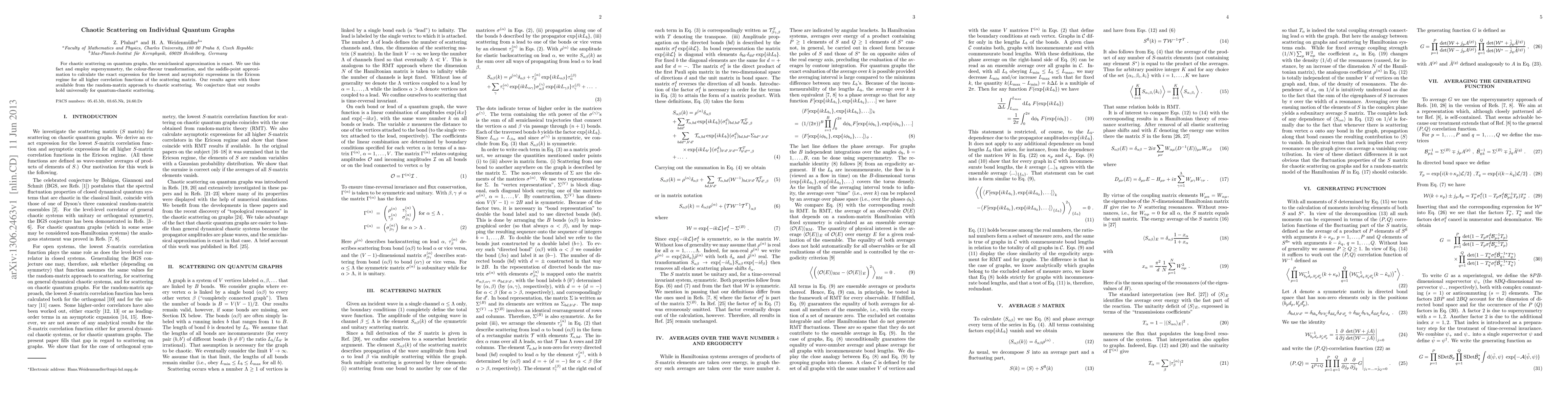 This paper demonstrates that semiclassical approximation is exact for chaotic scattering on quantum graphs. It uses supersymmetry and other methods to derive exact expressions for higher correlation functions in the Ericson regime, aligning with random-matrix approach results and suggesting universal applicability to quantum-chaotic scattering.