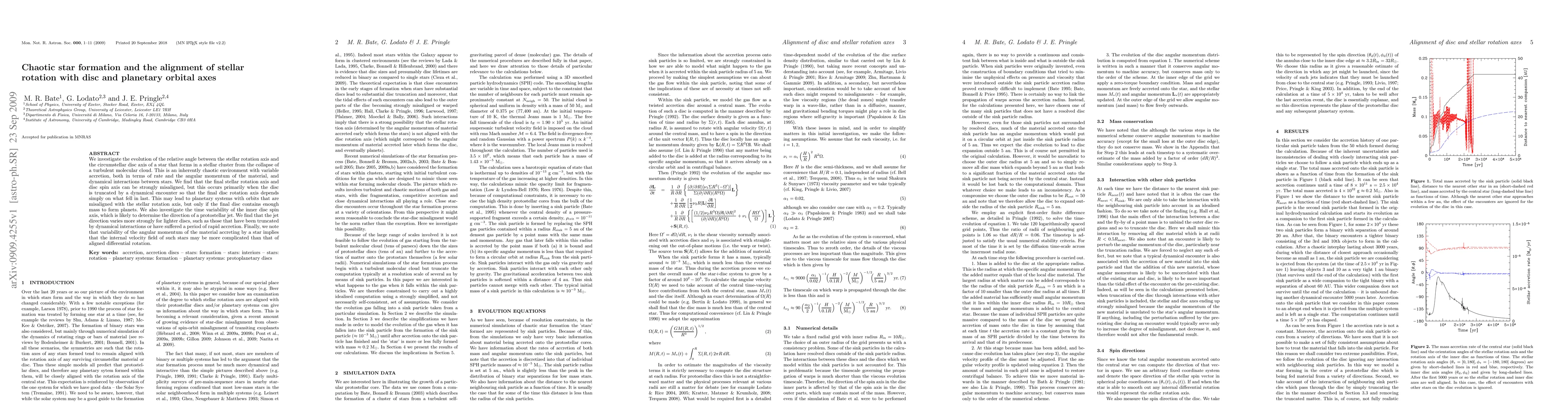 We investigate the evolution of the relative angle between the stellar rotation axis and the circumstellar disc axis of a star that forms in a stellar cluster from the collapse of a turbulent molecular cloud. This is an inherently chaotic environment with variable accretion, both in terms of rate and the angular momentum of the material, and dynamical interactions between stars. We find that the final stellar rotation axis and disc spin axis can be strongly misaligned, but this occurs primarily when the disc is truncated by a dynamical encounter so that the final disc rotation axis depends simply on what fell in last. This may lead to planetary systems with orbits that are misaligned with the stellar rotation axis, but only if the final disc contains enough mass to form planets. We also investigate the time variability of the inner disc spin axis, which is likely to determine the direction of a protostellar jet. We find that the jet direction varies more strongly for lighter discs, such as those that have been truncated by dynamical interactions or have suffered a period of rapid accretion. Finally, we note that variability of the angular momentum of the material accreting by a star implies that the internal velocity field of such stars may be more complicated than that of aligned differential rotation.