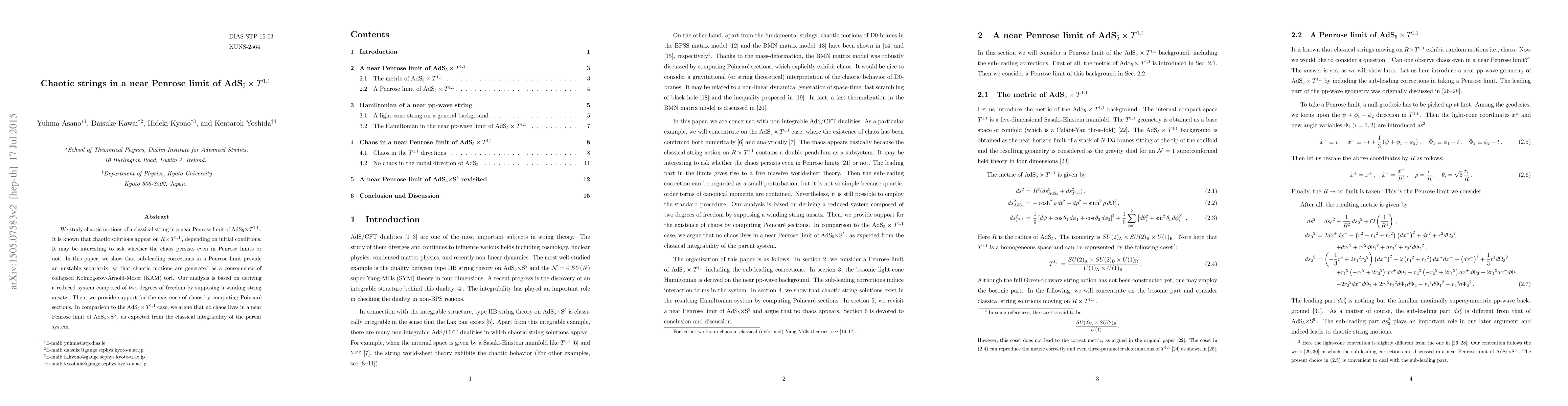 This paper investigates chaotic dynamics of a classical string in a near Penrose limit of AdS$_5\times T^{1,1}$ and finds that chaotic motions arise due to collapsed KAM tori. It contrasts this with AdS$_5\times$S$^5$, where classical integrability prevents chaos.