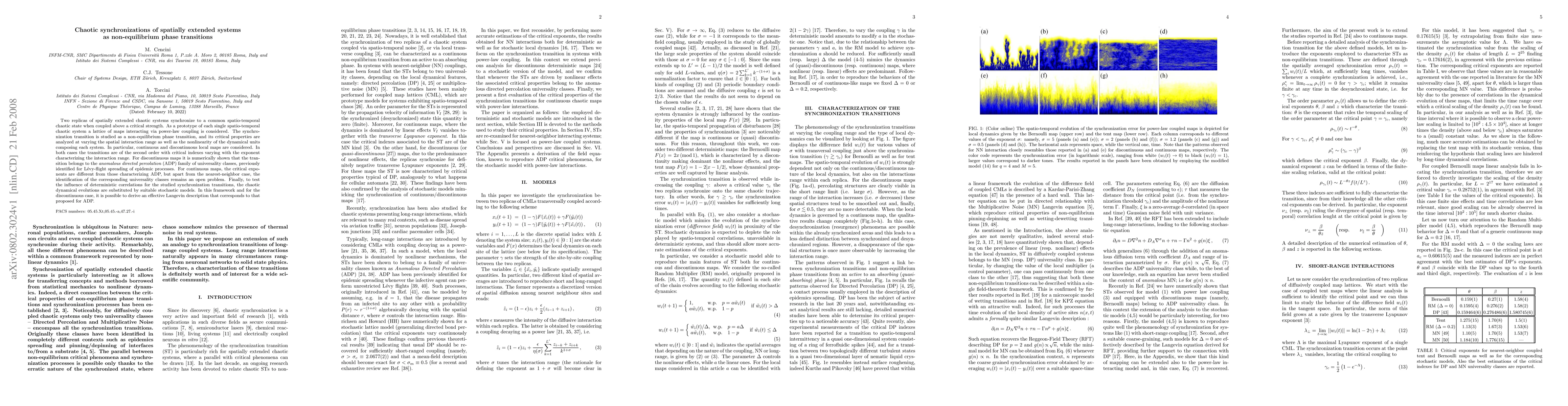 Researchers study how chaotic systems synchronize when connected above a critical strength, finding that synchronization transitions can occur through non-equilibrium phase transitions with varying critical properties.