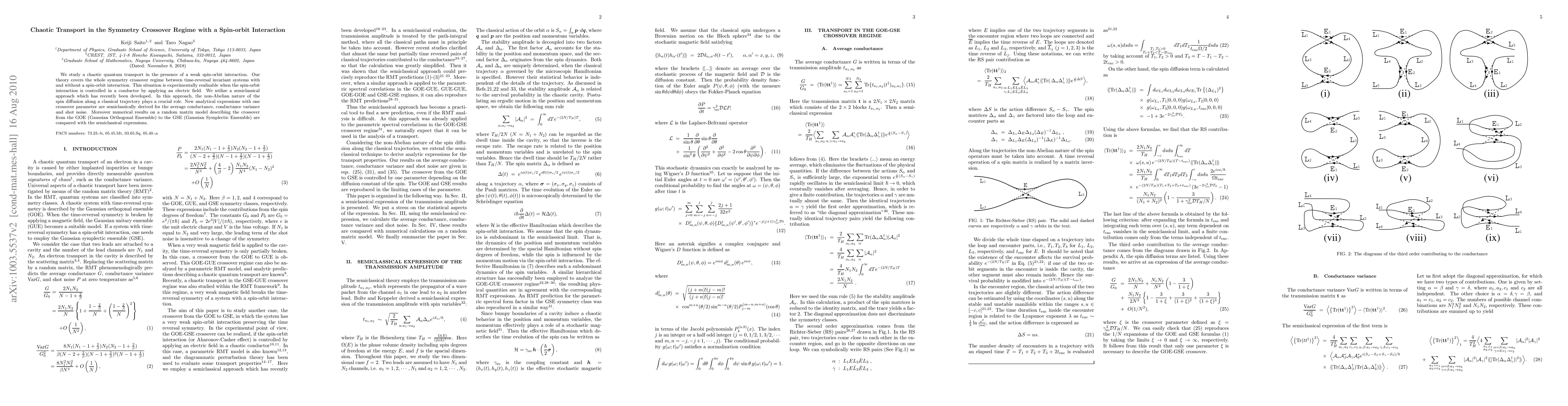 This paper investigates chaotic quantum transport in systems with a weak spin-orbit interaction, covering the symmetry crossover regime. Using a semiclassical approach, it derives new analytical expressions for conductance, variance, and shot noise, and compares these with numerical results from a random matrix model.