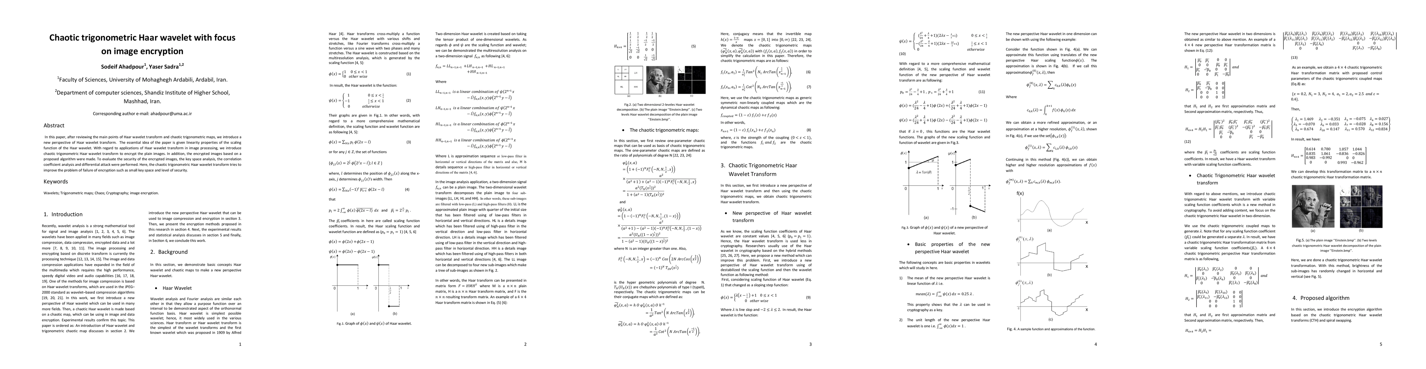 This paper proposes a chaotic trigonometric Haar wavelet transform for image encryption, leveraging the linearity properties of the Haar wavelet scaling function. The method aims to enhance security by addressing issues like small key space and differential attacks, evaluated through key space analysis, correlation coefficient analysis, and differential attack tests.
