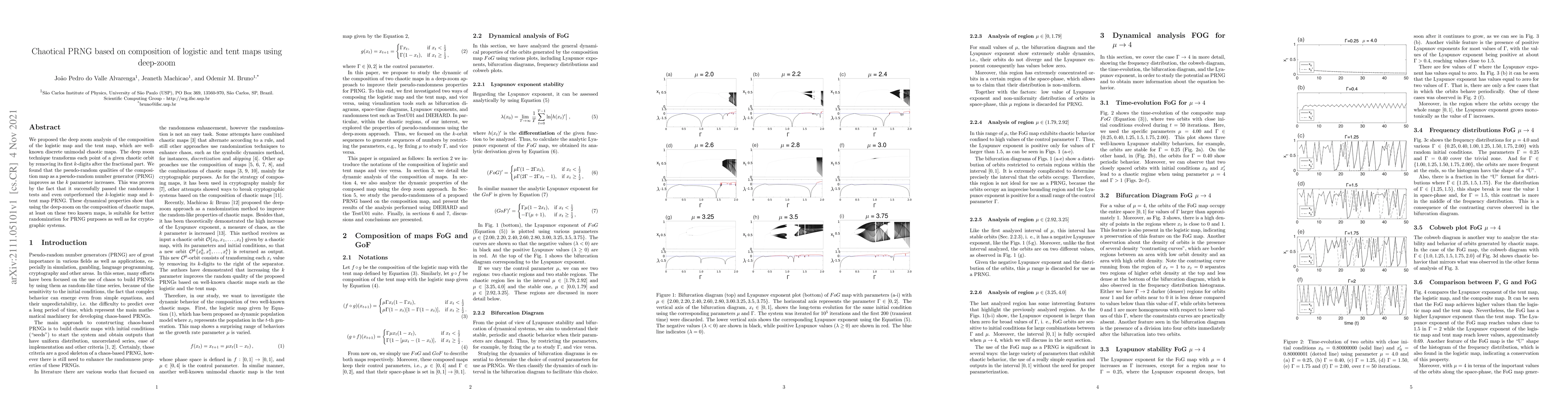 This paper proposes a deep zoom analysis of the composition of logistic and tent maps to enhance their pseudo-random number generator (PRNG) qualities. The deep zoom technique improves the PRNG performance as the k parameter increases, passing randomness tests and outperforming individual logistic and tent maps, indicating its suitability for cryptographic applications.