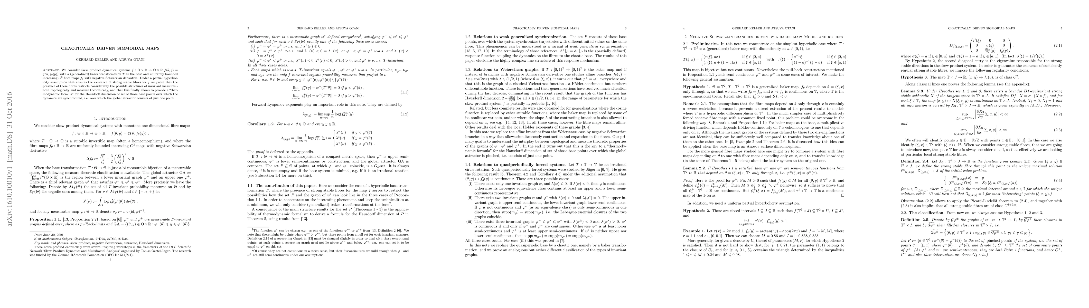 We consider skew product dynamical systems $f:\Theta\times\mathbb{R}\to\Theta\times\mathbb{R}, f(\theta,y)=(T\theta,f_\theta(y))$ with a (generalized) baker transformation $T$ at the base and uniformly bounded increasing $C^3$ fibre maps $f_\theta$ with negative Schwarzian derivative. Under a partial hyperbolicity assumption that ensures the existence of strong stable fibres for $f$ we prove that the presence of these fibres restricts considerably the possible structures of invariant measures - both topologically and measure theoretically, and that this finally allows to provide a "thermodynamic formula" for the Hausdorff dimension of set of those base points over which the dynamics are synchronized, i.e. over which the global attractor consists of just one point.