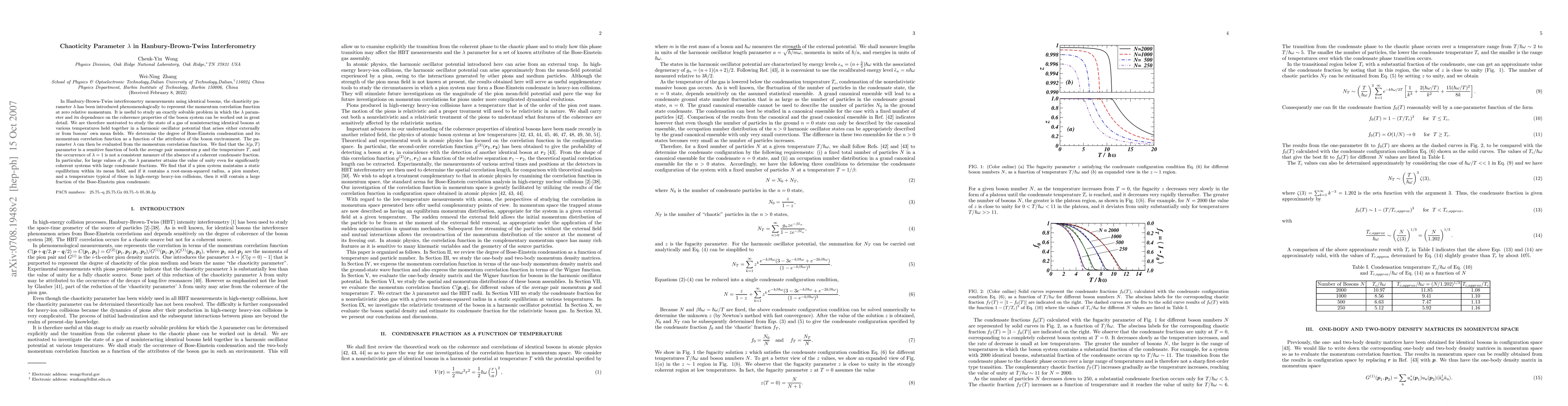 Researchers studied the behavior of identical bosons in a harmonic oscillator potential at various temperatures, finding that the chaoticity parameter lambda depends on both momentum and temperature, and that it can be used to detect the presence of a Bose-Einstein condensate.