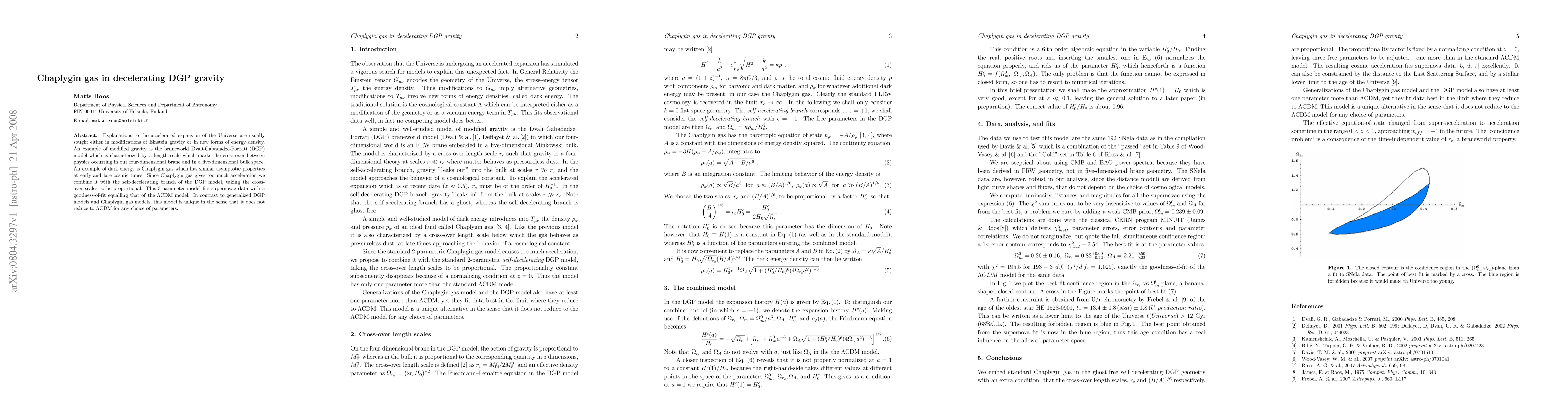 This paper explores a combined model of Chaplygin gas and the self-decelerating branch of DGP gravity to explain the accelerated expansion of the Universe without over-accelerating. It finds a 3-parameter model that fits supernovae data as well as the LambdaCDM model, while remaining distinct from other models.