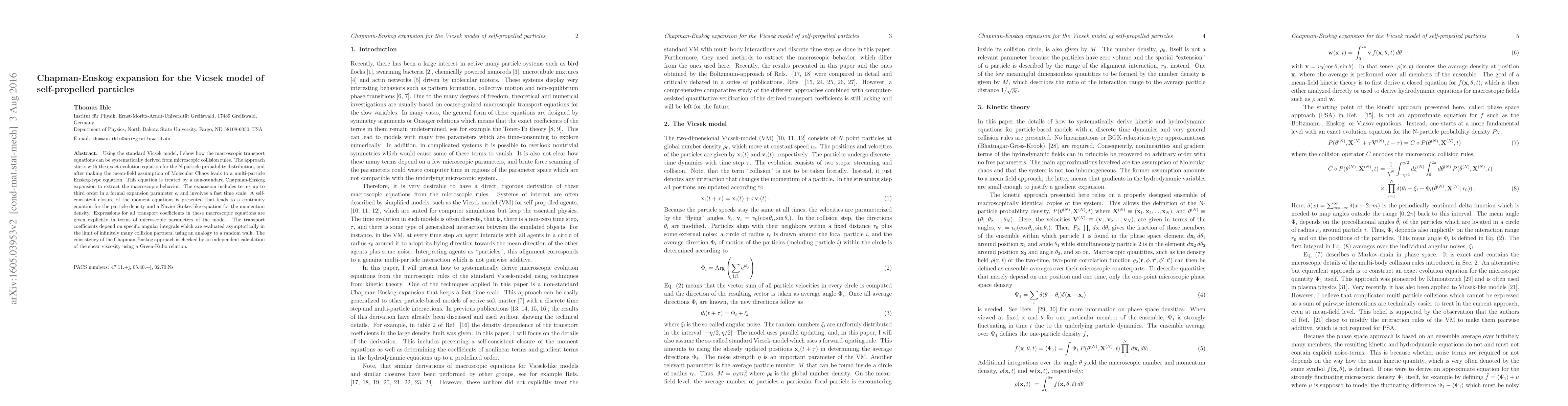 This paper derives macroscopic transport equations for the Vicsek model of self-propelled particles using a Chapman-Enskog expansion, resulting in explicit expressions for transport coefficients and validating the approach with shear viscosity calculations.