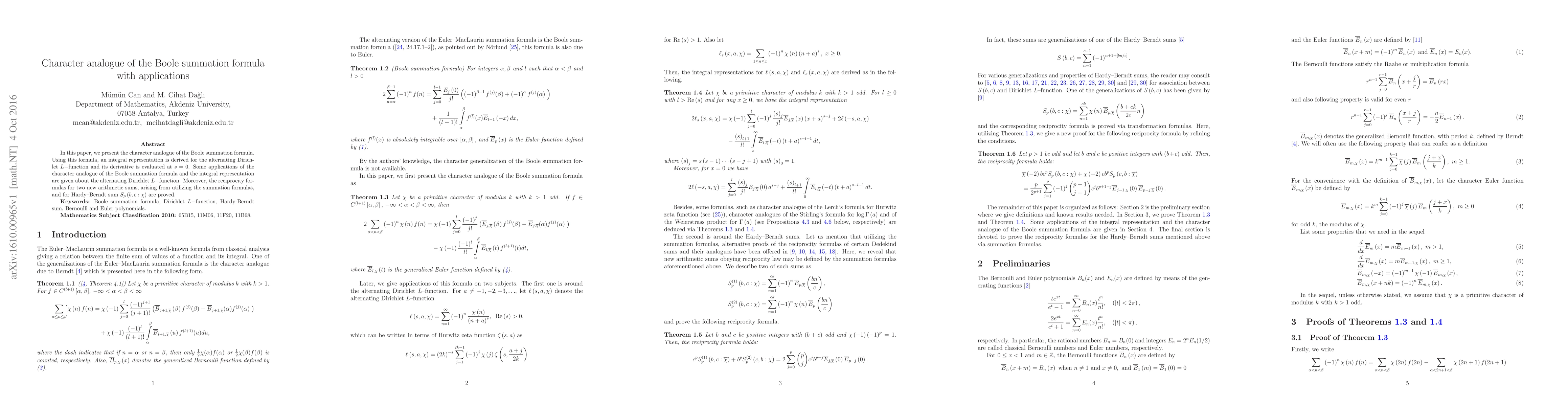 The paper introduces a character analogue of the Boole summation formula and derives new integral representations and reciprocity formulas for Dirichlet L-functions and related arithmetic sums.