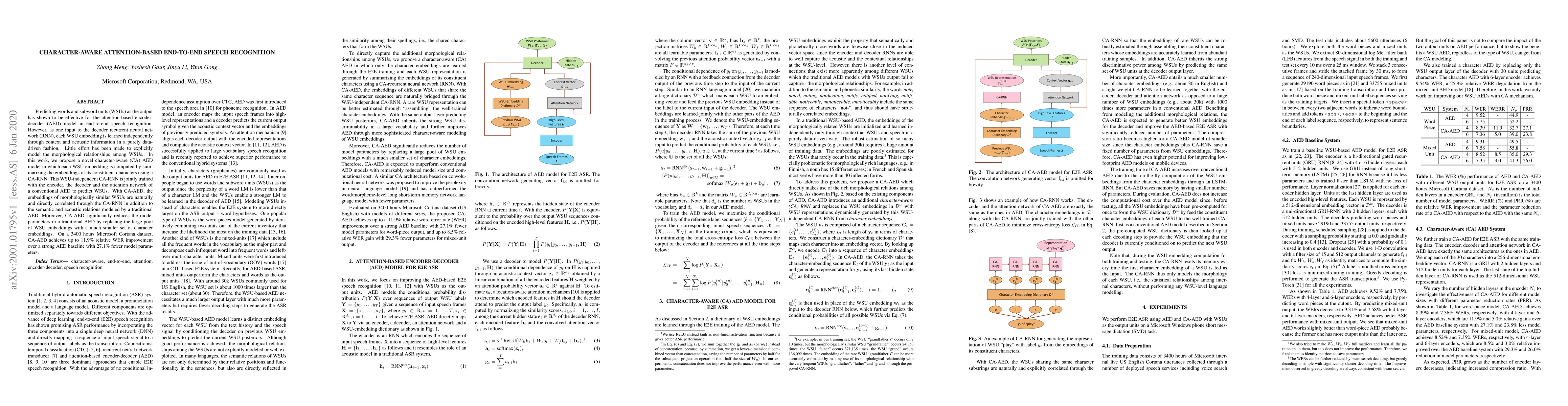 A new speech recognition model called Character-Aware Attention-Based End-to-End Speech Recognition (CA-AED) improves accuracy by 11.9% while reducing parameters by 27.1% compared to traditional models.