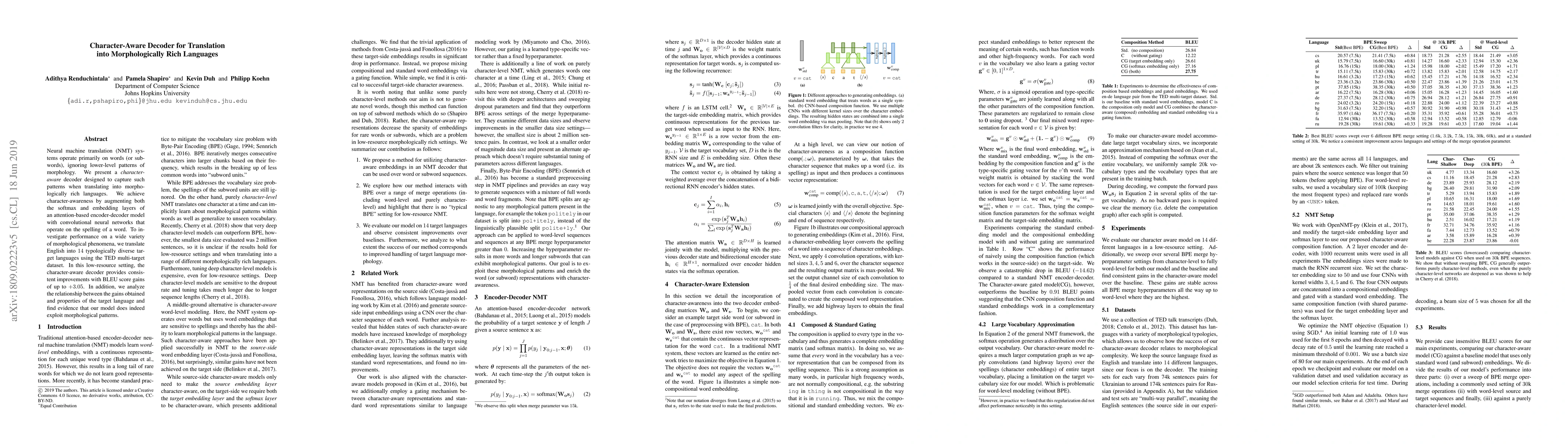 Neural machine translation (NMT) systems operate primarily on words (or sub-words), ignoring lower-level patterns of morphology. We present a character-aware decoder designed to capture such patterns when translating into morphologically rich languages. We achieve character-awareness by augmenting both the softmax and embedding layers of an attention-based encoder-decoder model with convolutional neural networks that operate on the spelling of a word. To investigate performance on a wide variety of morphological phenomena, we translate English into 14 typologically diverse target languages using the TED multi-target dataset. In this low-resource setting, the character-aware decoder provides consistent improvements with BLEU score gains of up to $+3.05$. In addition, we analyze the relationship between the gains obtained and properties of the target language and find evidence that our model does indeed exploit morphological patterns.