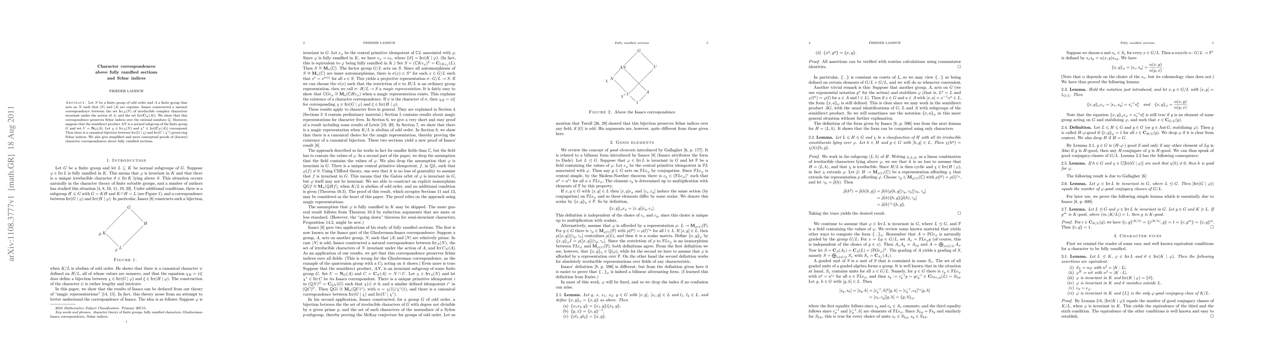 Let N be a finite group of odd order and A a finite group that acts on N such that the orders of N and A are coprime. Isaacs constructed a natural correspondence between the set Irr_A(N) of irreducible complex characters invariant under the action of A, and the irreducible characters of the centralizer of A in N, Irr(C_N(A)). We show that this correspondence preserves Schur indices over the rational numbers. Moreover, suppose that the semidirect product AN is a normal subgroup of the finite group G and set U= N_G(A). Let \chi \in Irr_A(N) and \chi* \in Irr(C_N(A)) correspond. Then there is a canonical bijection between Irr(G | \chi) and Irr(U | \chi*) preserving Schur indices. We also give simplified and more conceptual proofs of (known) character correspondences above fully ramified sections.