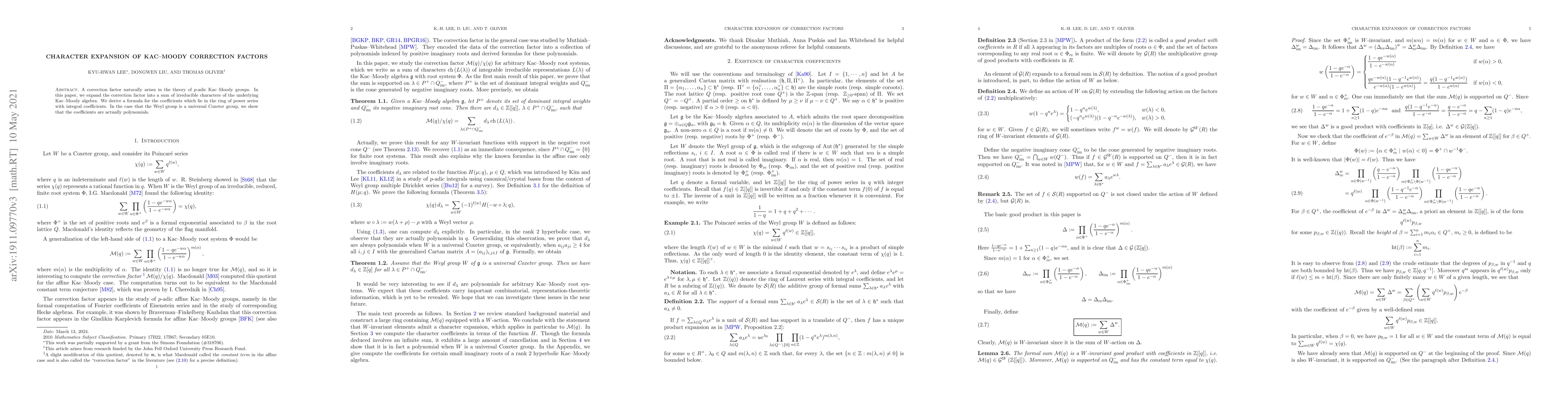 A correction factor naturally arises in the theory of p-adic Kac--Moody groups. In this paper, we expand the correction factor into a sum of irreducible characters of the underlying Kac--Moody algebra. We derive a formula for the coefficients, which lie in the ring of power series with integral coefficients. In the case that the Weyl group is a universal Coxeter group, we show that the coefficients are actually polynomials.