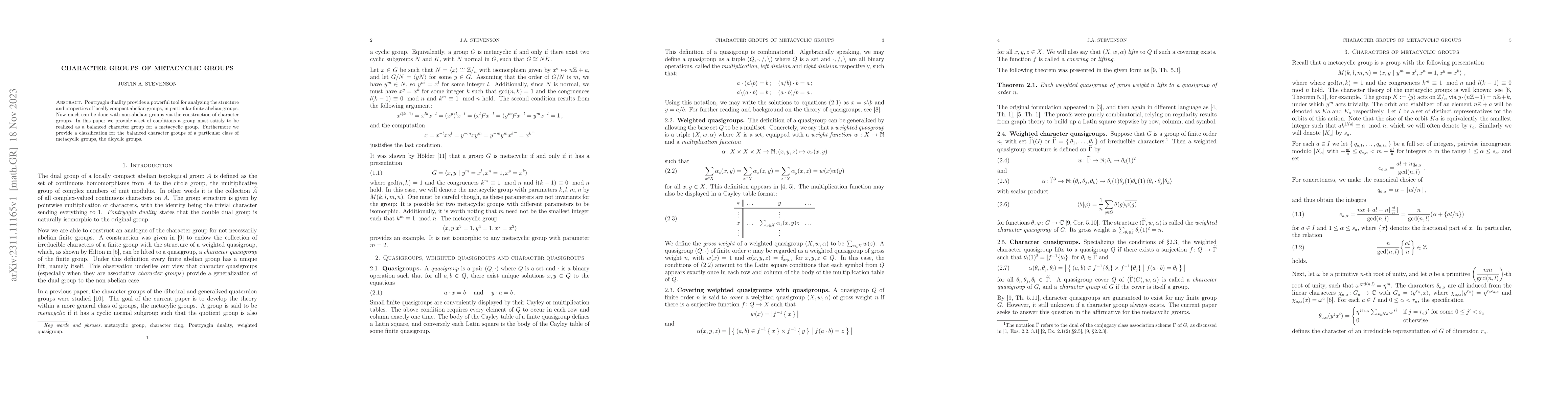 This paper explores the use of Pontryagin duality to analyze metacyclic groups, particularly focusing on establishing conditions for a group to be realized as a balanced character group. It also classifies the balanced character groups for dicyclic metacyclic groups.