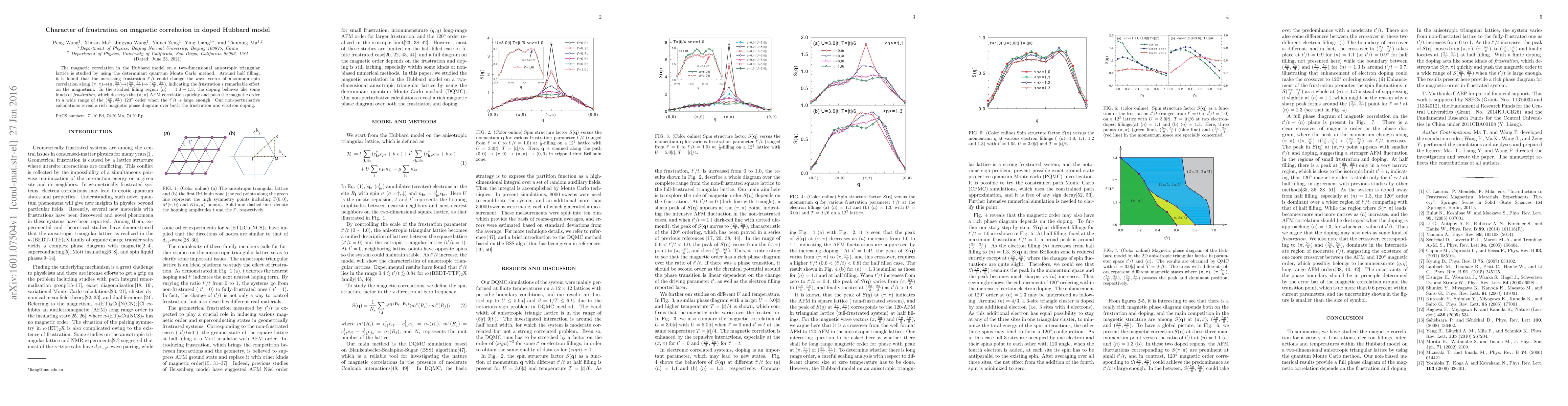 The paper presents detailed DQMC simulations of the Hubbard model on an anisotropic triangular lattice, revealing a rich magnetic phase diagram over frustration and doping.