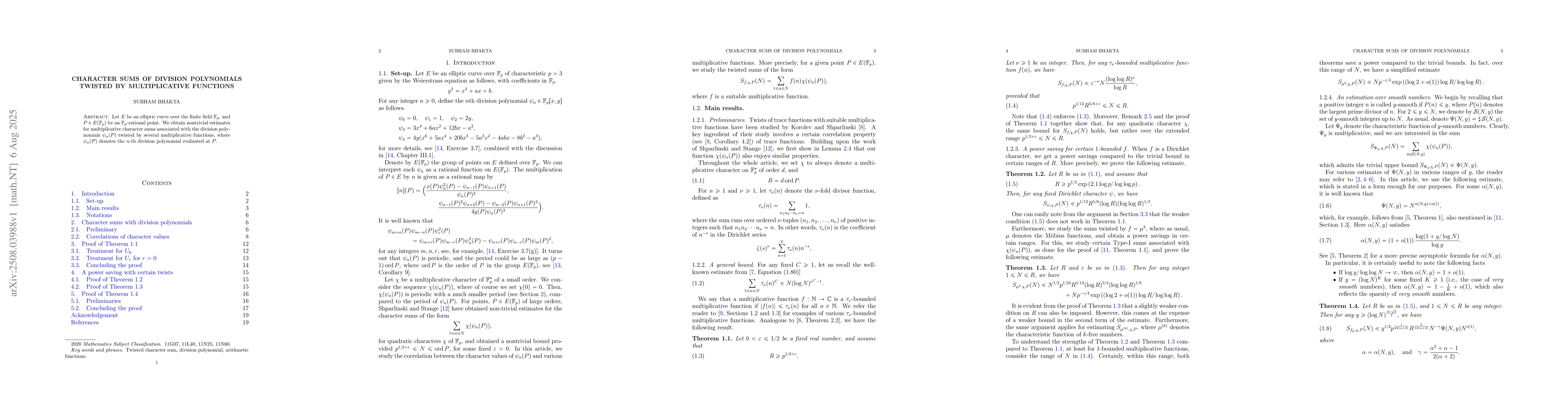 Let $E$ be an elliptic curve over the finite field $\mathbb{F}_p$, and $P \in E(\mathbb{F}_p)$ be an $\F_p$-rational point. We obtain nontrivial estimates for multiplicative character sums associated with the division polynomials $\psi_n(P)$ twisted by several multiplicative functions, where $\psi_n(P)$ denotes the $n$-th division polynomial evaluated at $P$.