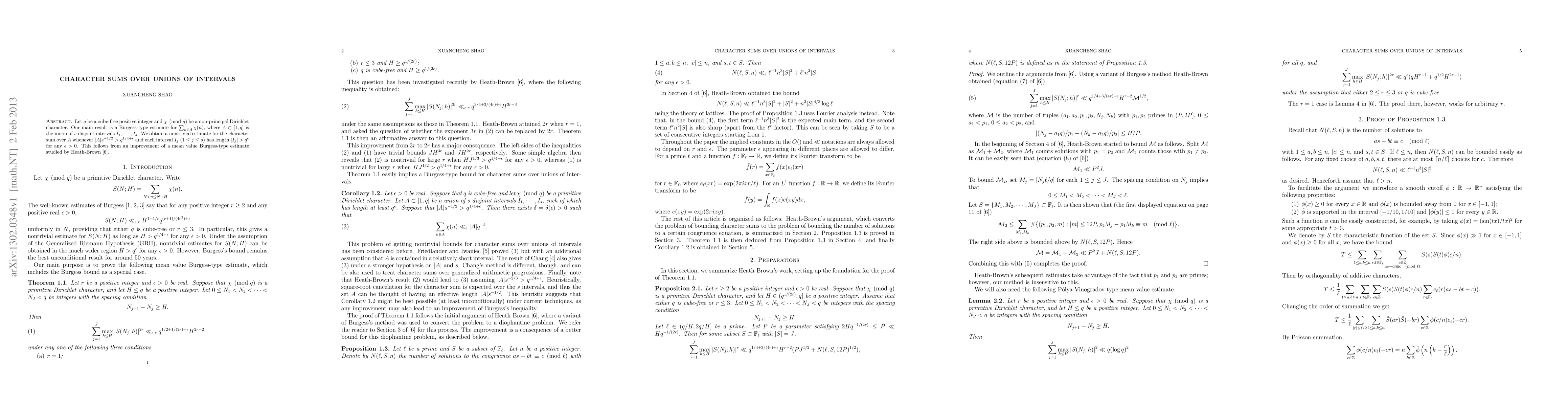 Summary: This paper establishes a refined Burgess-type bound for character sums over unions of intervals, achieved through an enhanced version of Heath-Brown's argument, particularly improving one of its key steps.