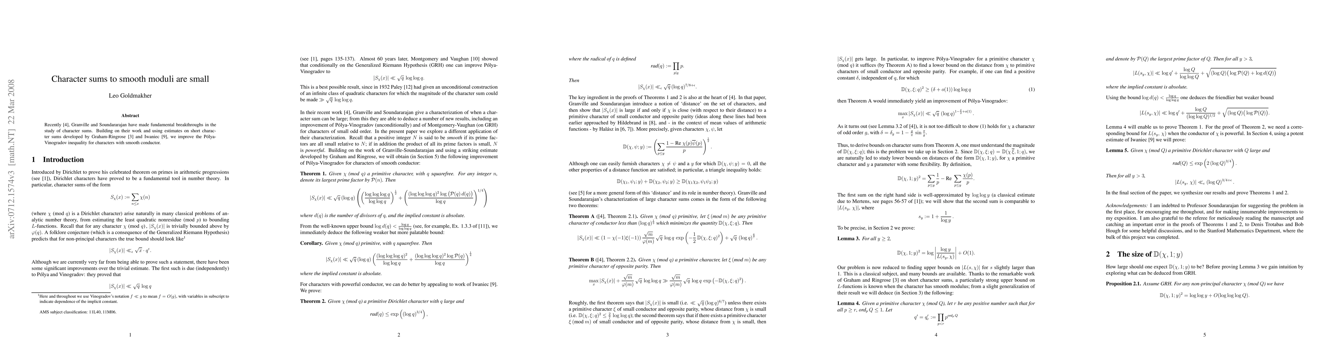 Summary: This research builds on breakthroughs by Granville and Soundararajan to refine the Polya-Vinogradov inequality for character sums with smooth moduli, leveraging estimates from Graham-Ringrose and Iwaniec. The study demonstrates smaller bounds for these character sums.
