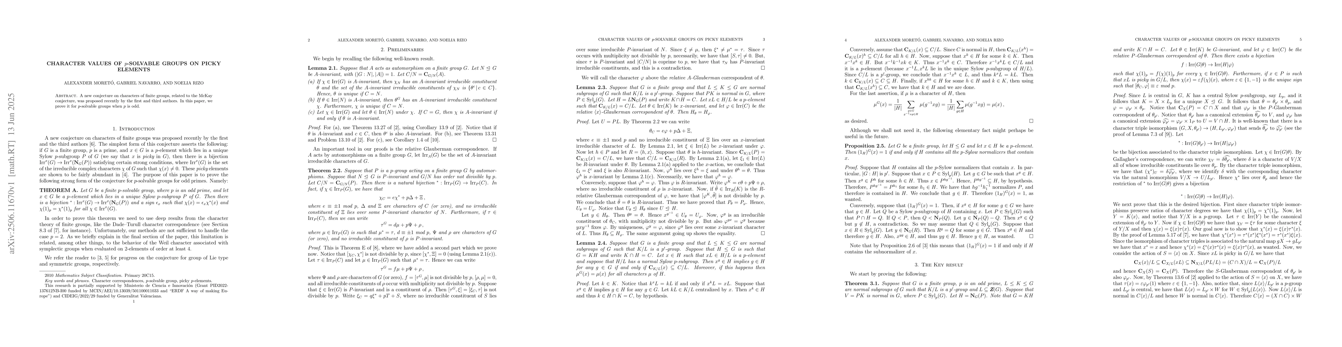 This paper proves a recently proposed conjecture about group characters for p-solvable groups, specifically when p is an odd prime. The conjecture, related to the McKay conjecture, was originally put forth by the authors themselves.