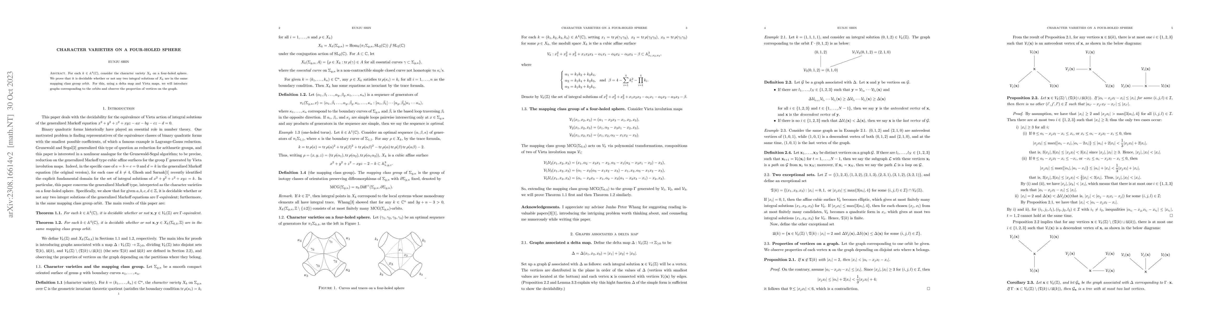 This paper proves the decidability of whether two integral solutions of the character variety on a four-holed sphere belong to the same mapping class group orbit, utilizing delta maps and Vieta maps to construct and analyze corresponding graphs.