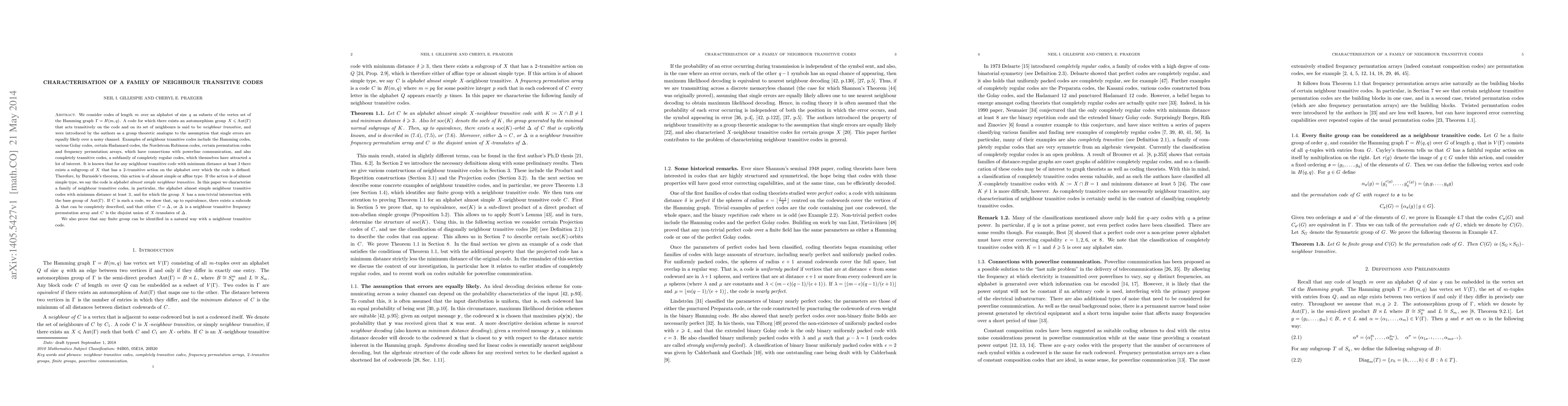 This paper characterises a family of neighbour transitive codes, specifically focusing on alphabet almost simple neighbour transitive codes with minimum distance at least 3. It demonstrates that such codes can be described by a subcode, either fully or as a union of group translates.