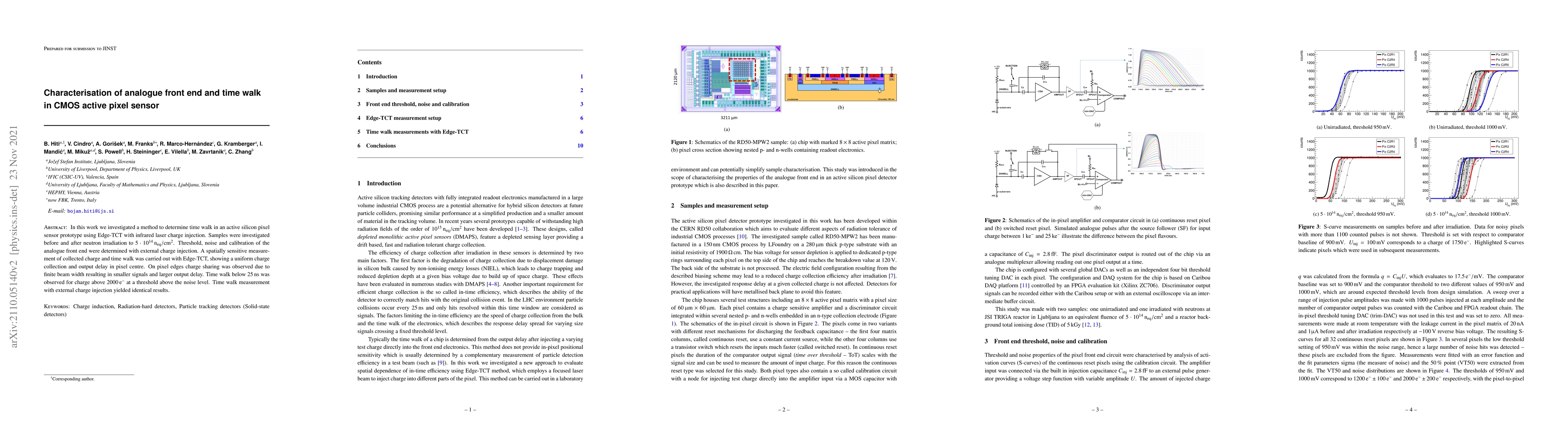 Researchers developed a method to measure time walk in CMOS active pixel sensors using infrared laser charge injection, finding that time walk was below 25 ns for high-charge signals.