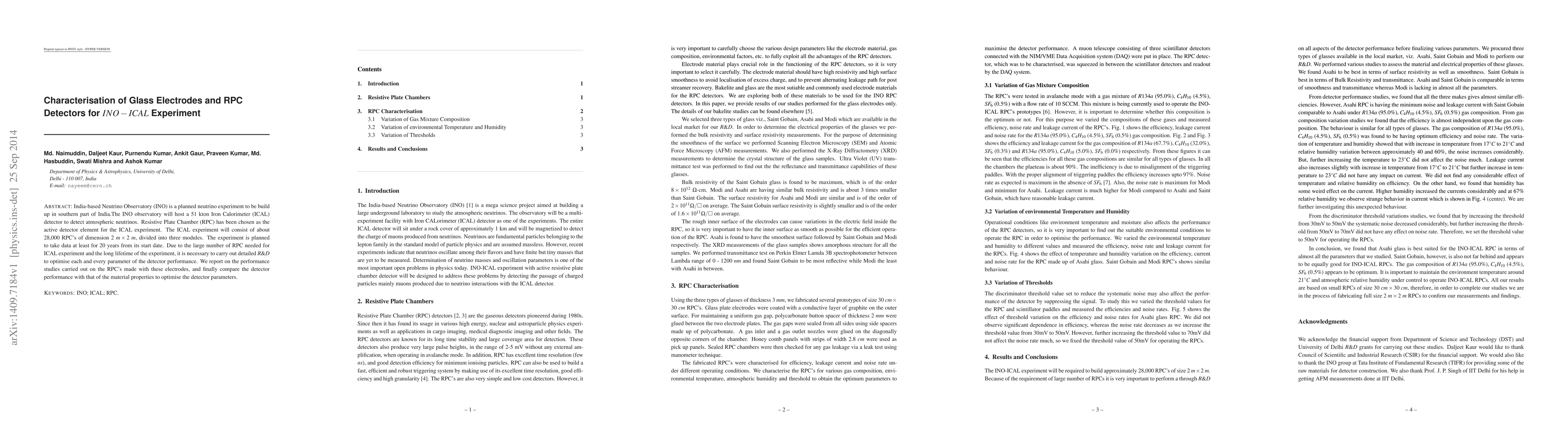 This paper characterizes glass electrodes and RPC detectors for the INO-ICAL experiment, focusing on optimizing the performance of the 28,000 resistive plate chambers needed for the 51 kton Iron Calorimeter. It reports on detailed R&D studies to enhance detector parameters and compares detector performance with material properties for long-term operation.