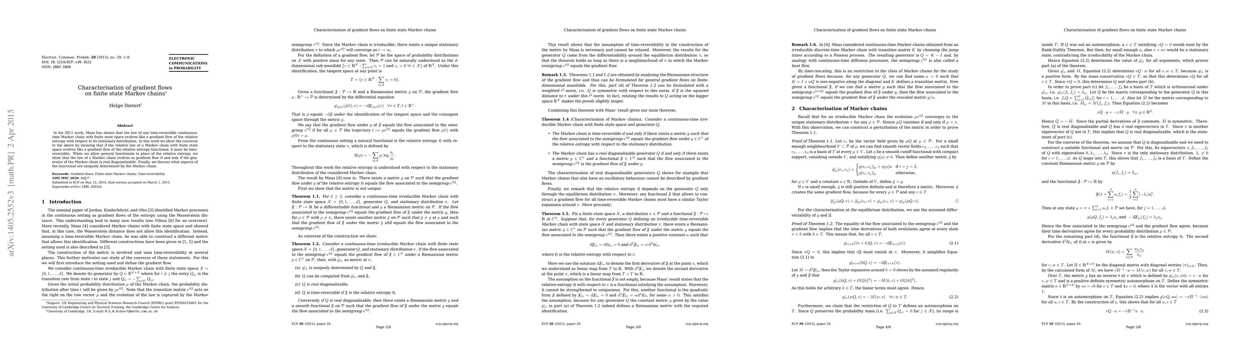In his 2011 work, Maas has shown that the law of any time-reversible continuous-time Markov chain with finite state space evolves like a gradient flow of the relative entropy with respect to its stationary distribution. In this work we show the converse to the above by showing that if the relative law of a Markov chain with finite state space evolves like a gradient flow of the relative entropy functional, it must be time-reversible. When we allow general functionals in place of the relative entropy, we show that the law of a Markov chain evolves as gradient flow if and only if the generator of the Markov chain is real diagonalisable. Finally, we discuss what aspects of the functional are uniquely determined by the Markov chain.