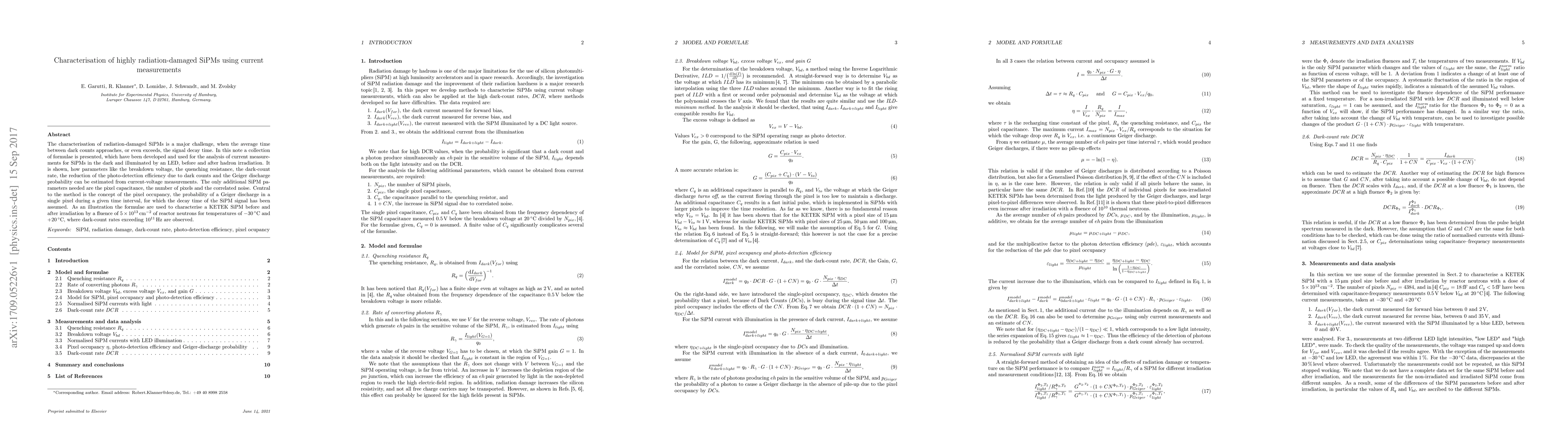 The characterisation of radiation-damaged SiPMs is a major challenge, when the average time between dark counts approaches, or even exceeds, the signal decay time. In this note a collection of formulae is presented, which have been developed and used for the analysis of current measurements for SiPMs in the dark and illuminated by an LED, before and after hadron irradiation. It is shown, how parameters like the breakdown voltage, the quenching resistance, the dark-count rate, the reduction of the photo-detection efficiency due to dark counts and the Geiger discharge probability can be estimated from current-voltage measurements. The only additional SiPM parameters needed are the pixel capacitance, the number of pixels and the correlated noise. Central to the method is the concept of the pixel occupancy, the probability of a Geiger discharge in a single pixel during a given time interval, for which the decay time of the SiPM signal has been assumed. As an illustration the formulae are used to characterise a KETEK SiPM before and after irradiation by a fluence of 5E13 cm$^{-2}$ of reactor neutrons for temperatures of -30{\deg}C and +20{\deg}C, where dark-count rates exceeding 1E11 Hz are observed.