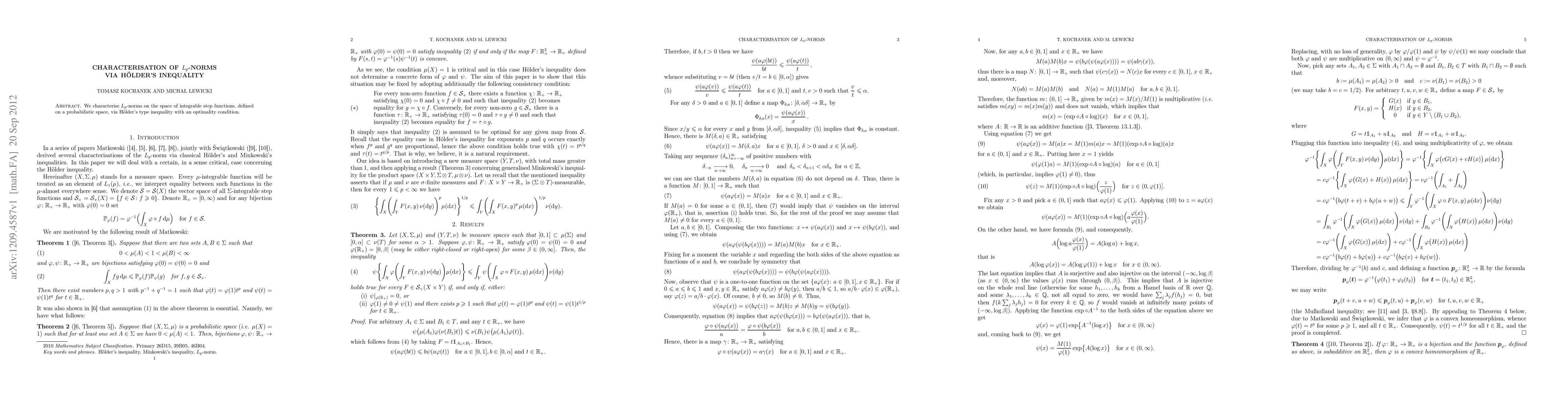 We characterise $L_p$-norms on the space of integrable step functions, defined on a probabilistic space, via H\"older's type inequality with an optimality condition.